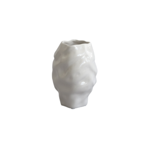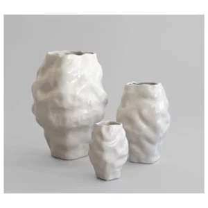 Featuring a high-gloss ceramic glaze, the vases reflect their surroundings with a fluid, mirror-like quality, further enhancing the interplay of light and texture. The glossy finish contrasts beautifully with the raw and irregular forms, making each piece feel both refined and sculptural.