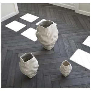 The collection includes three distinct sizes, each designed to work harmoniously together or stand out on its own. Whether used for floral arrangements or displayed as standalone objects, the Katachi vases bring a quiet sense of movement and character to any space.