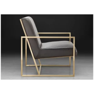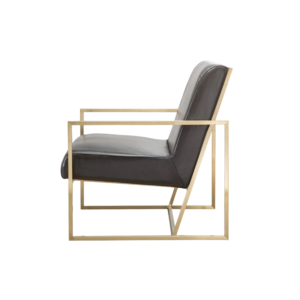 Frame: Crafted from satin gold brass, the squared profile invokes classic modernism, serving as both structure and ornament. The slender arms and continuous base outline form a striking contrast with the enveloping, pillowed leather seat.