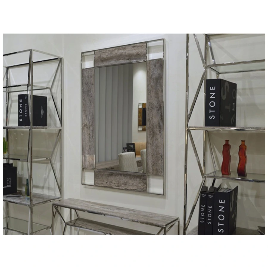 This mirror brings together the timeless allure of marble and modern design, making it a distinctive focal point in either residential or commercial projects.