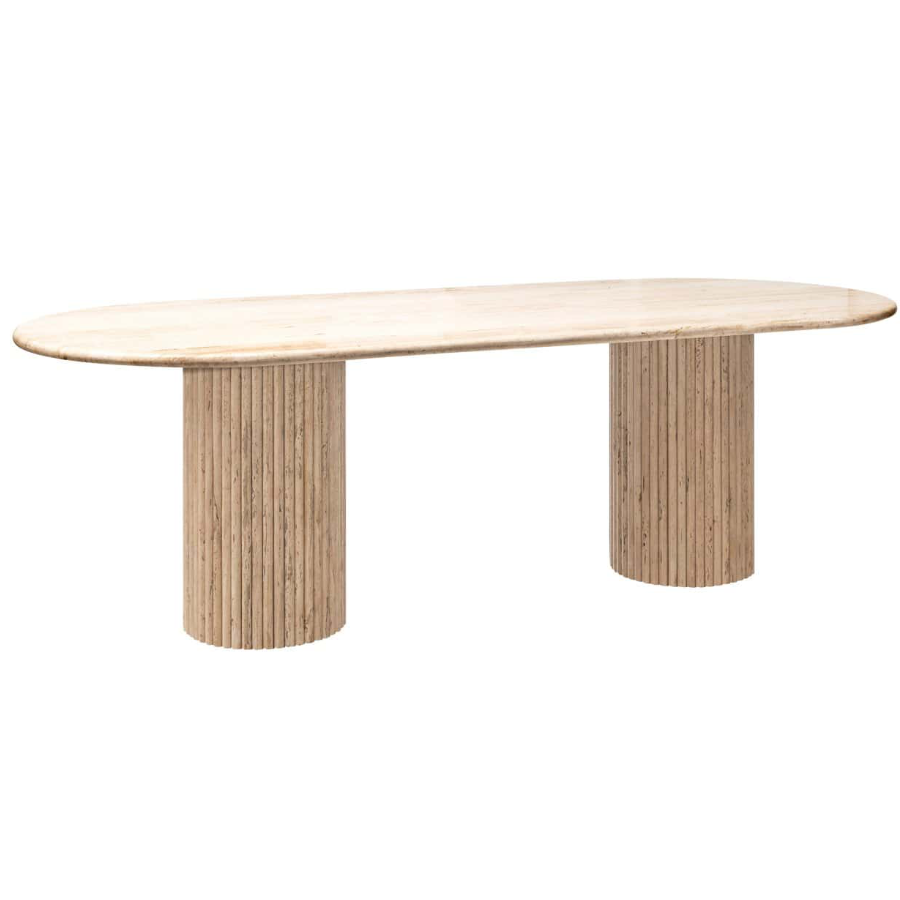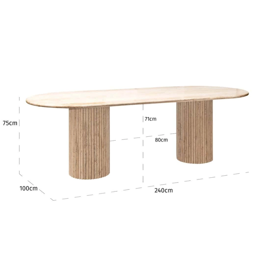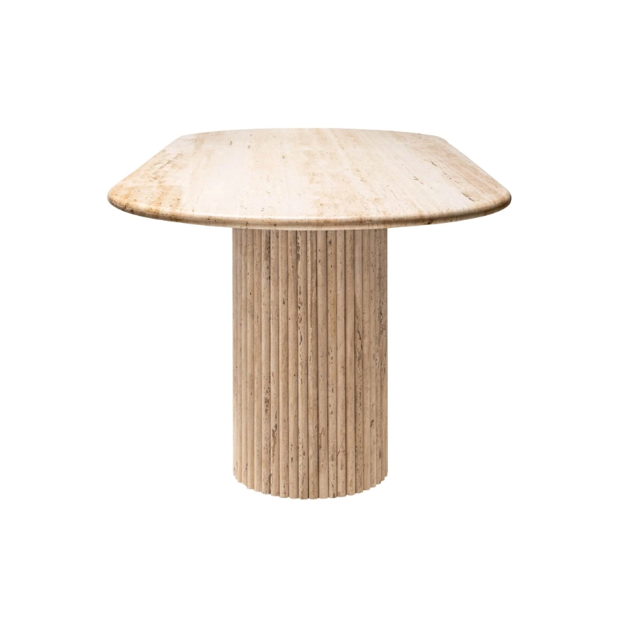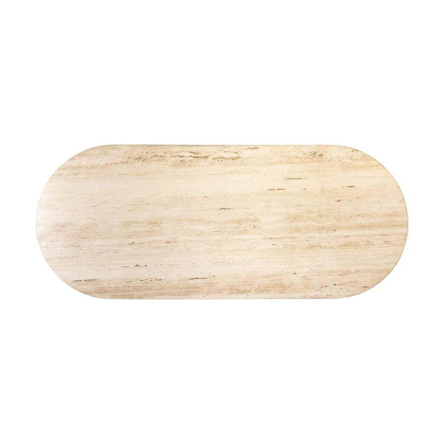 The travertine material ensures durable and timeless quality, allowing the table to last a long time and retain its beauty.