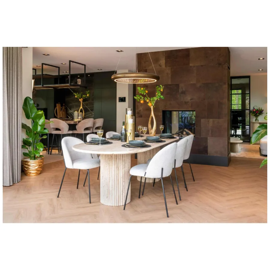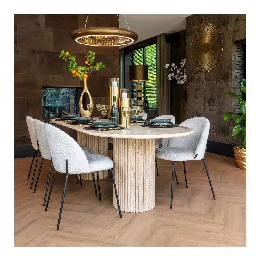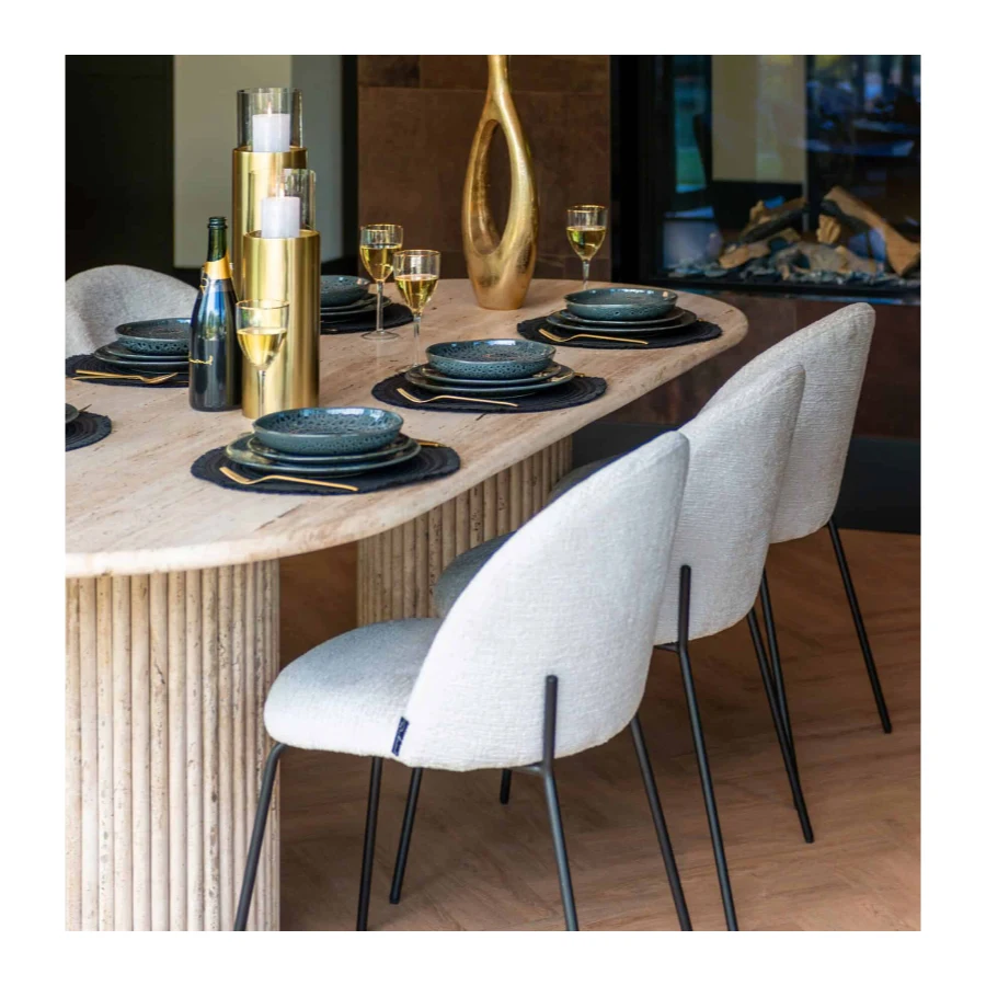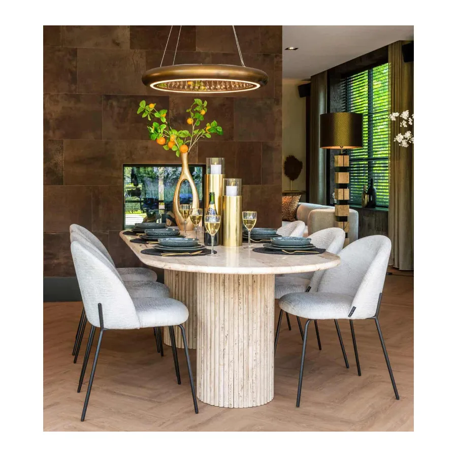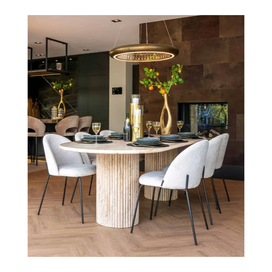 The travertine material ensures durable and timeless quality, allowing the table to last a long time and retain its beauty.