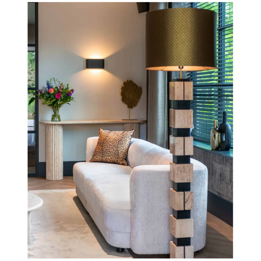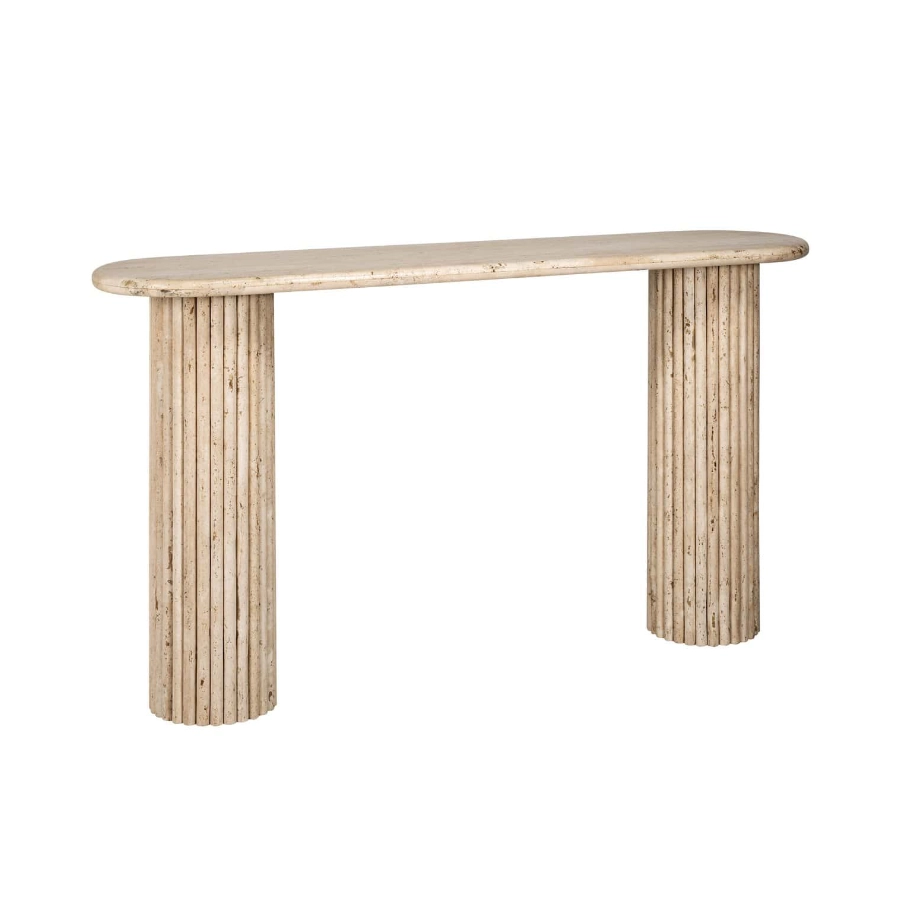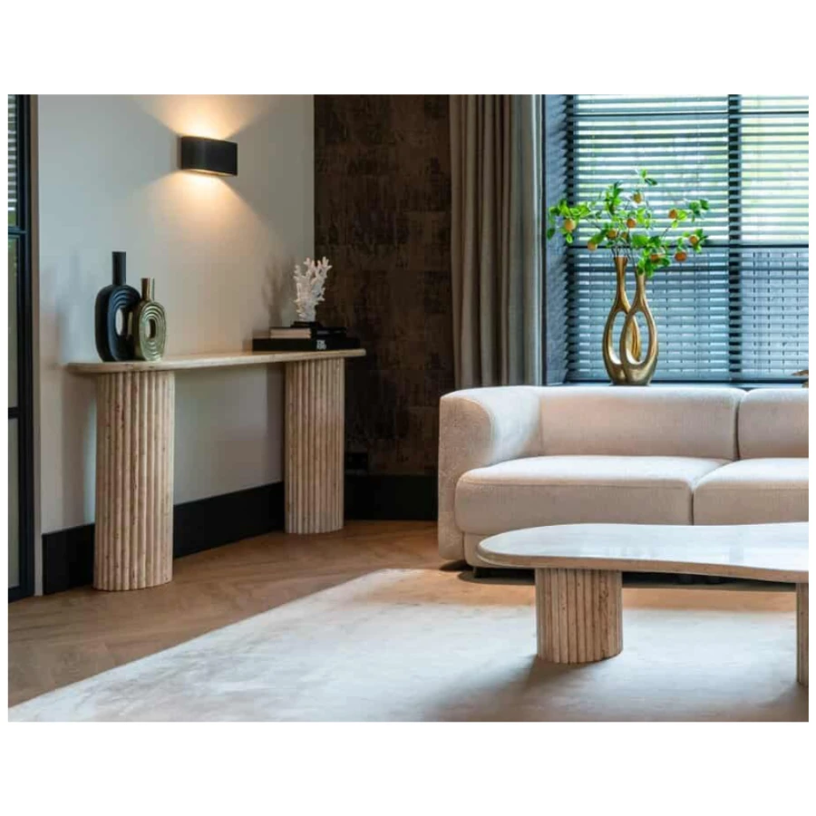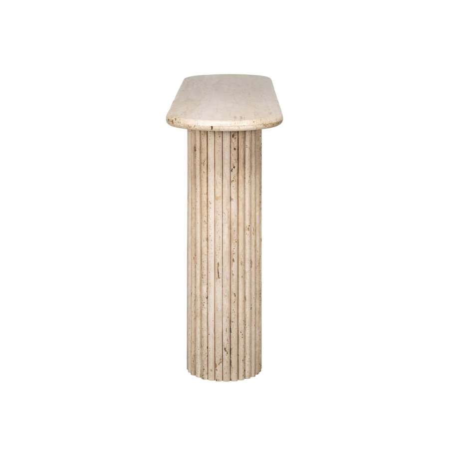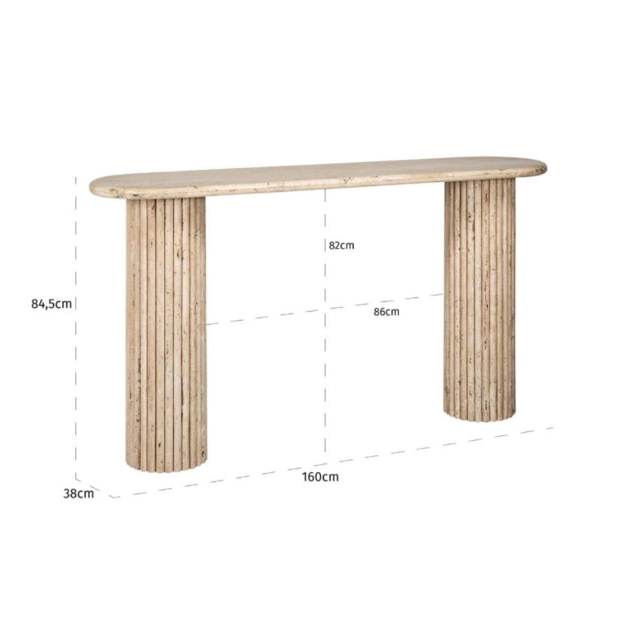 This wall table is made of high-quality travertine, giving it a luxurious look that is timeless.