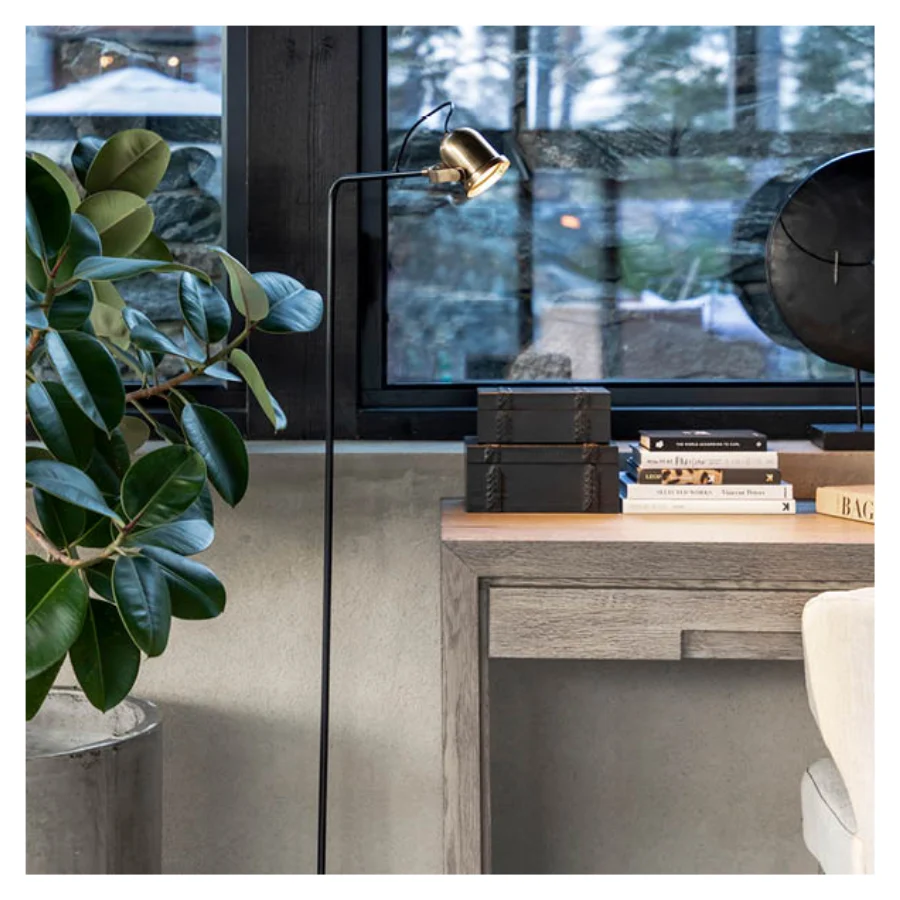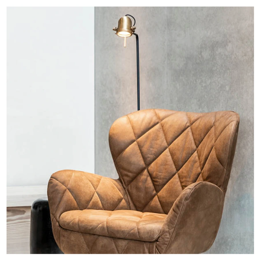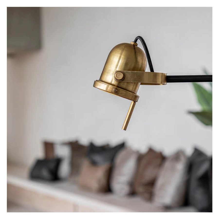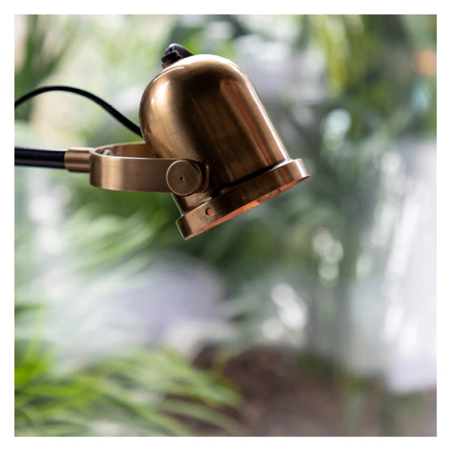 With its industrial look and black base, it adds character to the room both day and night. The adjustable antique brass lampshade provides optimal lighting for reading and other activities. A functional and stylish lamp that enhances the interior of your home. Perfect for those looking for both design and practical lighting.