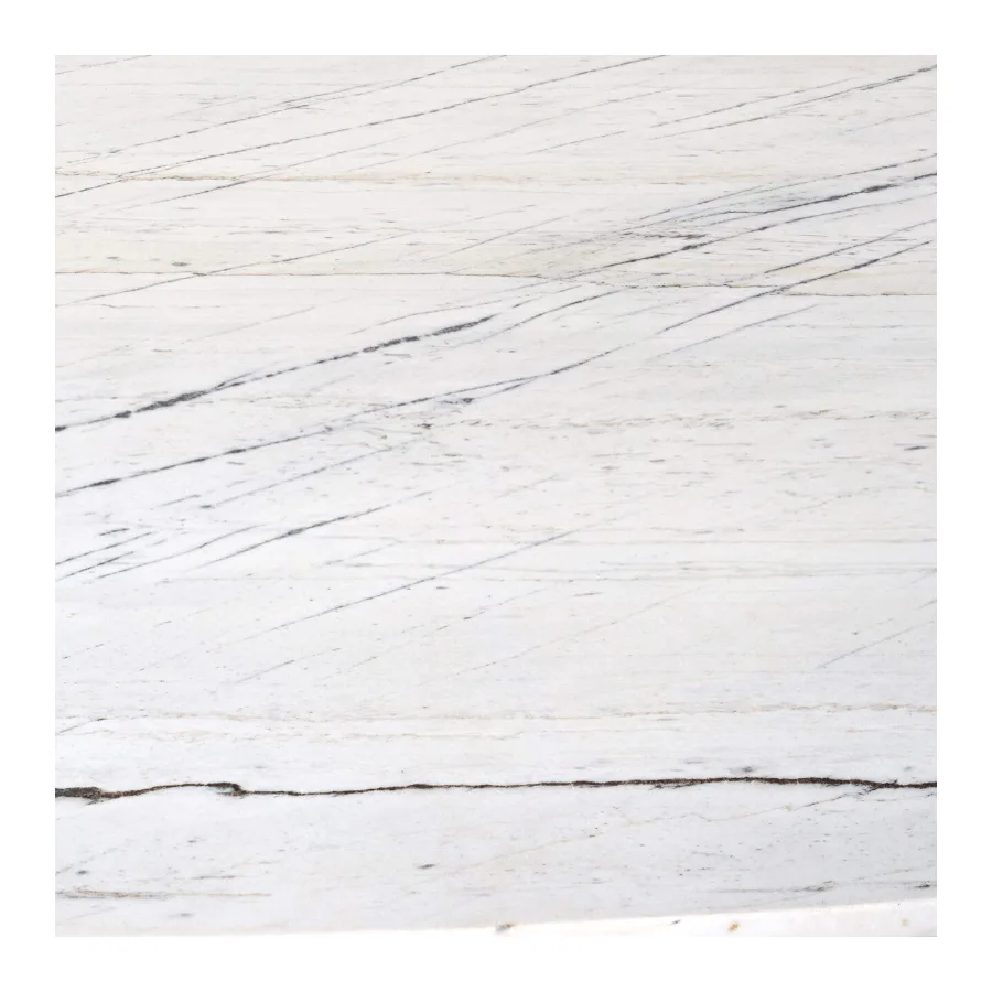 The table is made of Carrara marble combined with black-sprayed iron.