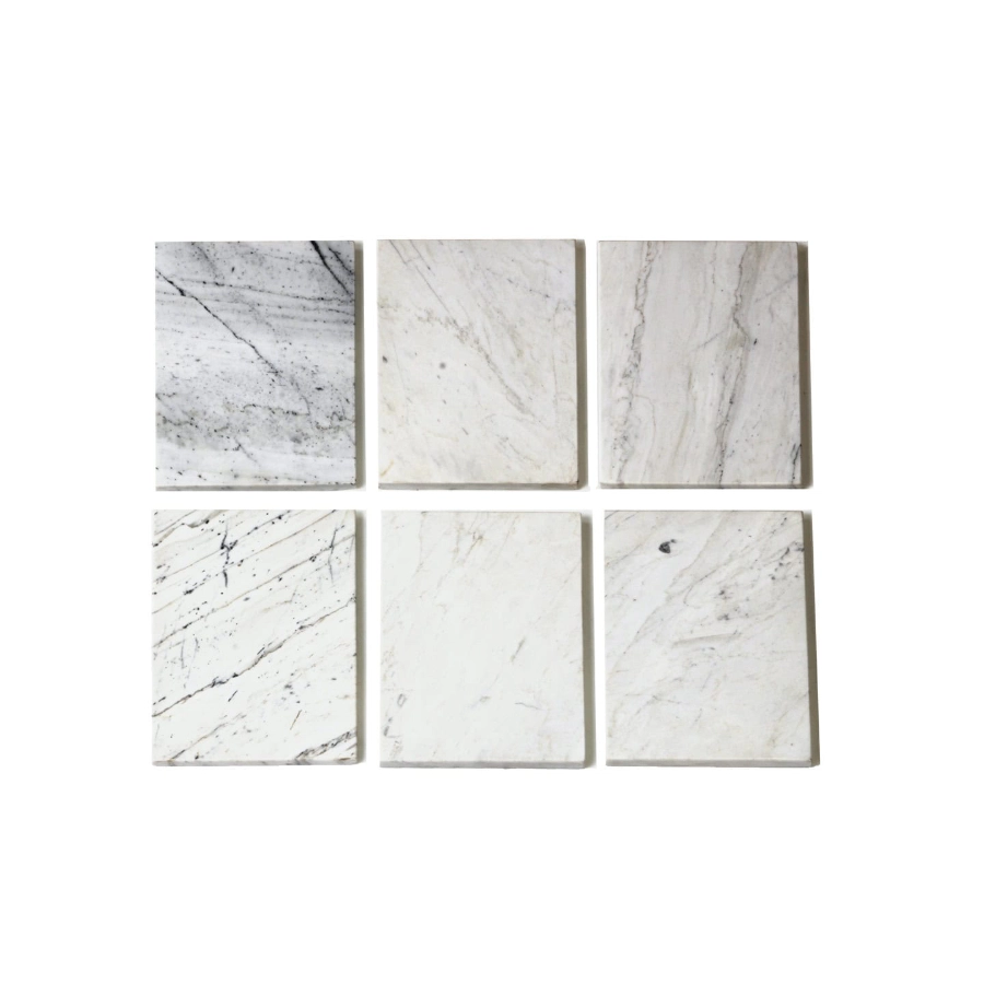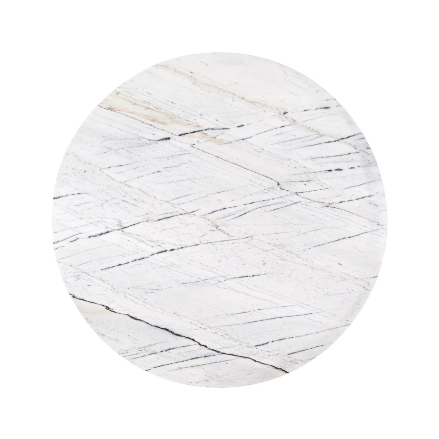 Genuine Carrara marble is combined with black-sprayed iron bases.