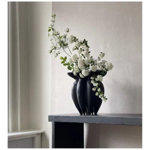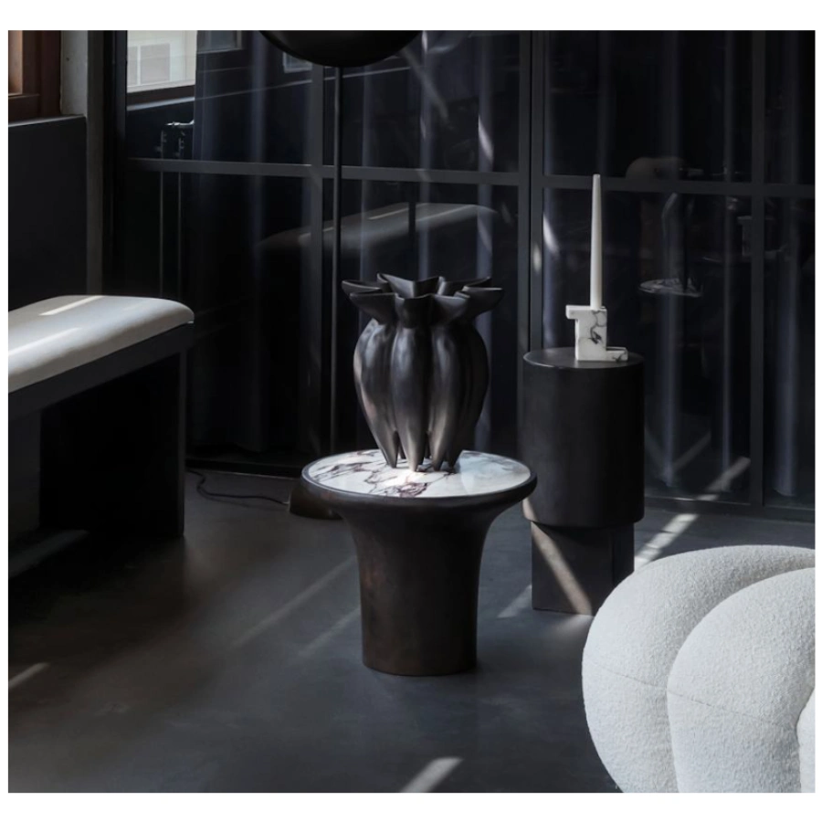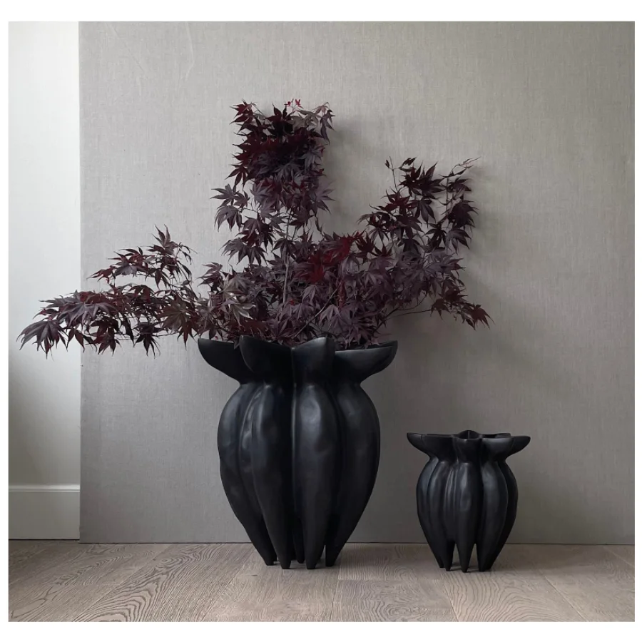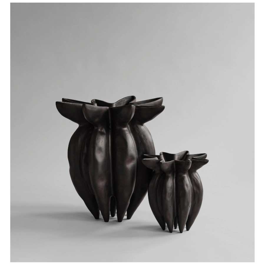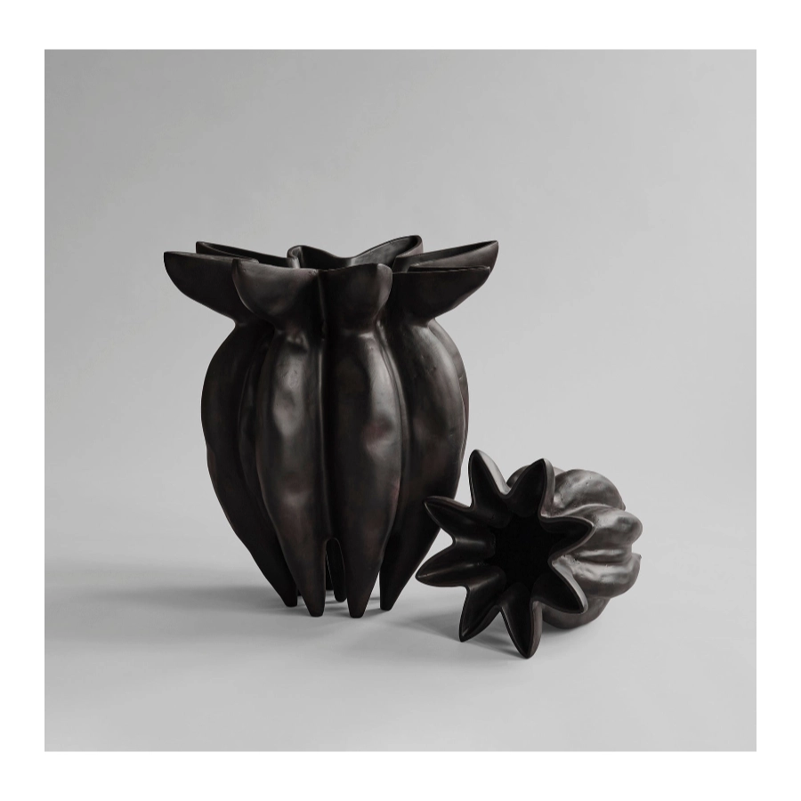 Elegantly sculpted, the Lotus vase is characterised by several flowers fading into each other, resting on top of a set of sharp feet. The smooth and organic surface is contrasted by sharp lines, running from the feet to the top of the vase, creating a star shaped opening.