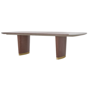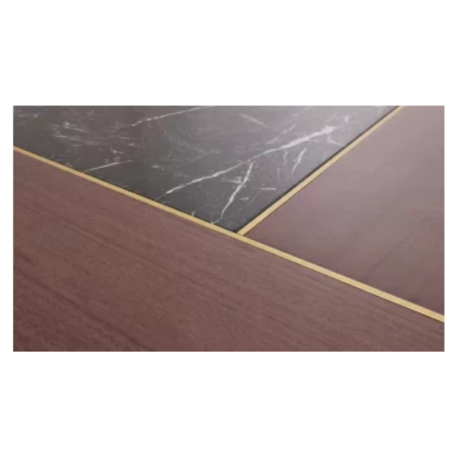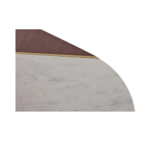 Material & Finishing: Stained Eucalyptus Top and Legs(30% Sheen) MR08 and MR09 Marble Top Corners, Brass Feet Caps + Top Inlay