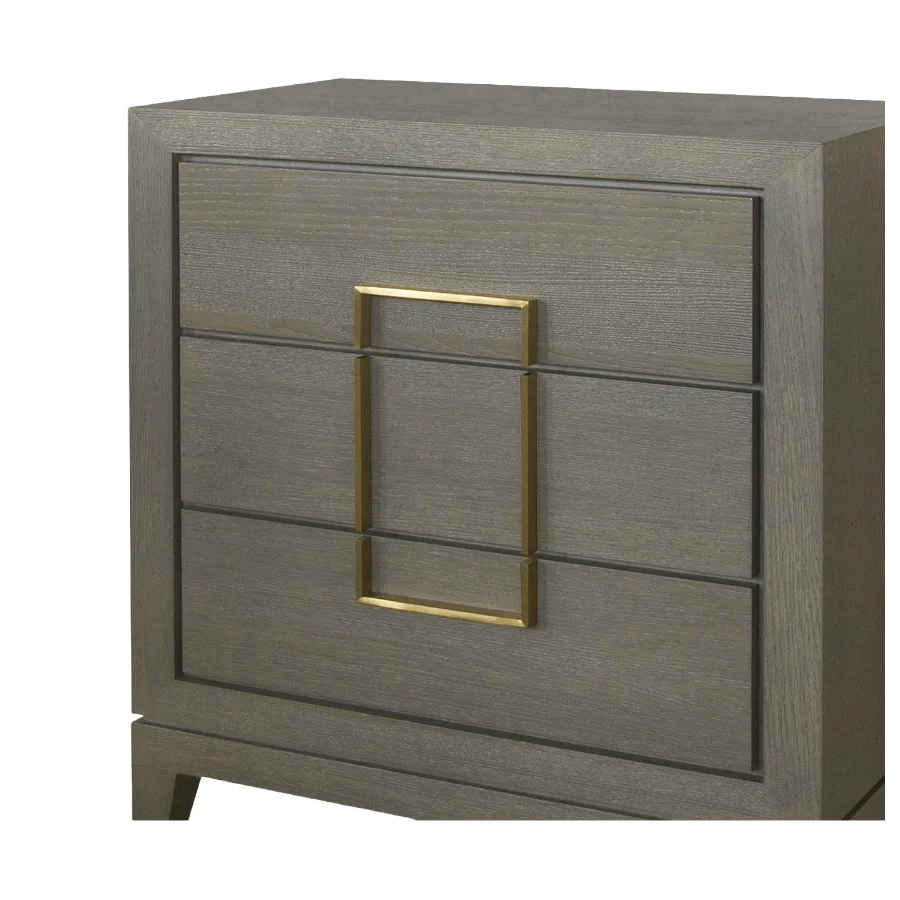 The Lucca 3-Drawer Chest is finished in a textured taupe coloured oak veneer with brass handles in a striking rectangular shaped design.
