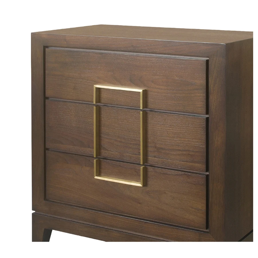The Lucca 3-Drawer Chest is finished in a walnut coloured veneer with brass handles in a striking rectangular shaped design.
