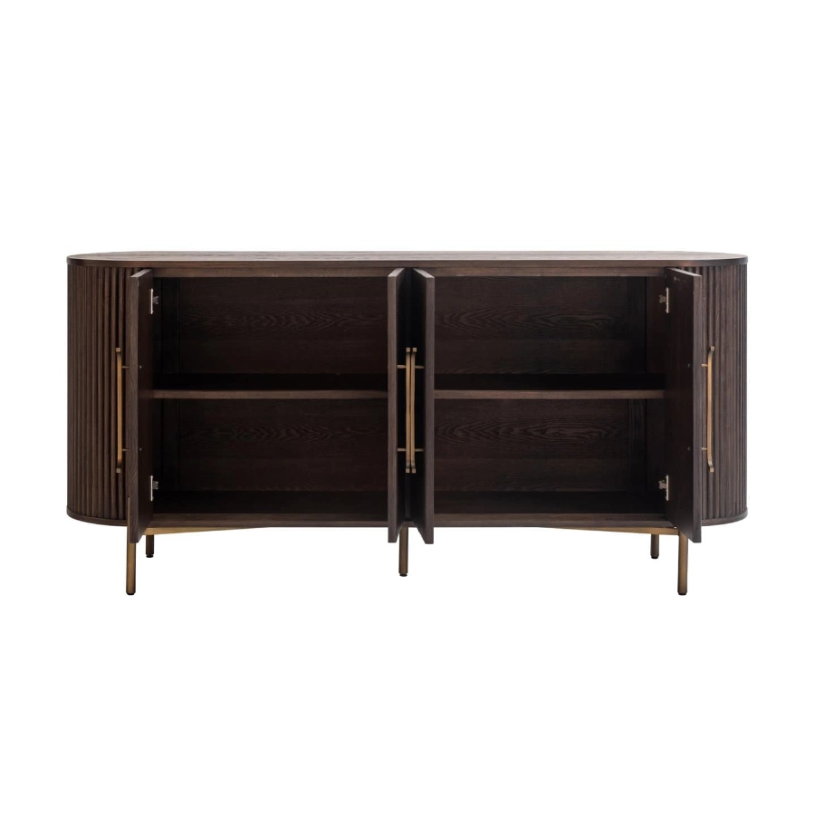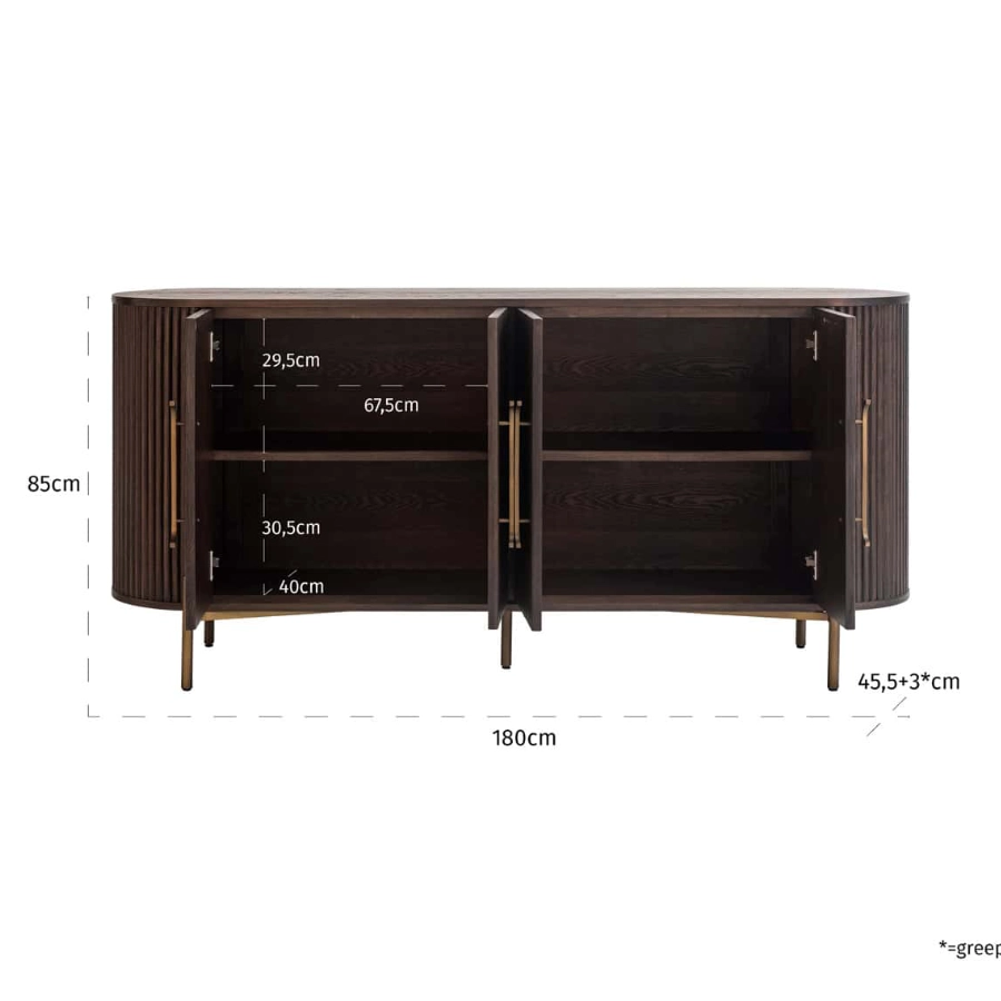 Made from high-quality oak and enriched with elegant, brushed gold details, this piece of furniture adds sophistication to any space.
