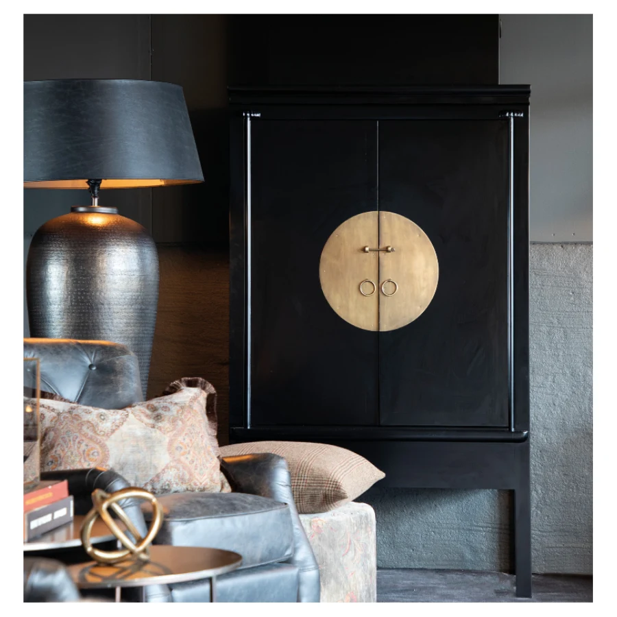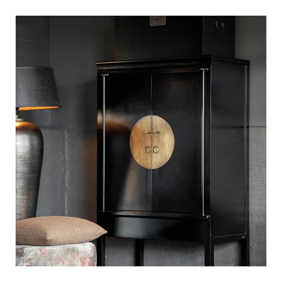 Macao from Artwood has an exotic and stylish design and an elegant black colour with a fine detail on the front in brass.