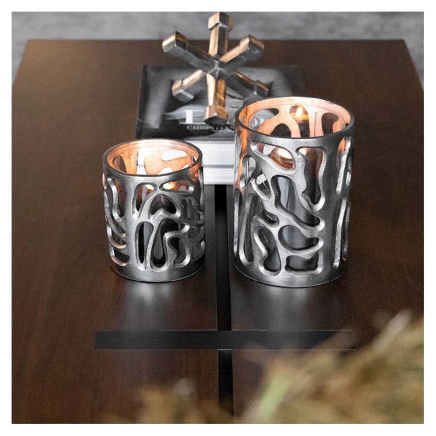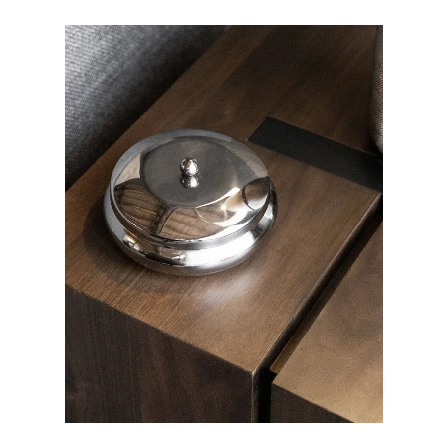 The tabletop is crafted from walnut veneer, adding a natural and luxurious touch, while the unique Gun Metal-colored metal details bring an industrial and refined accent that immediately catches the eye.