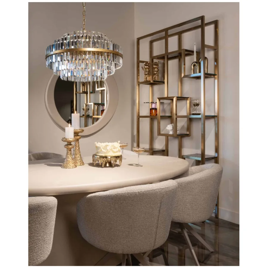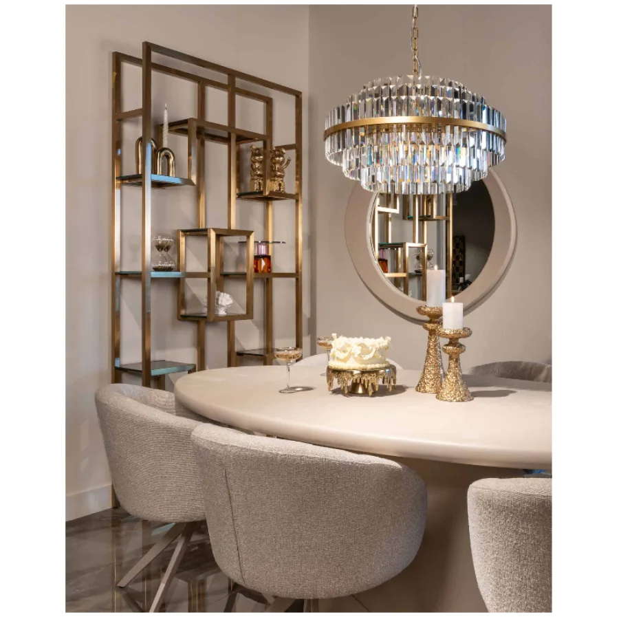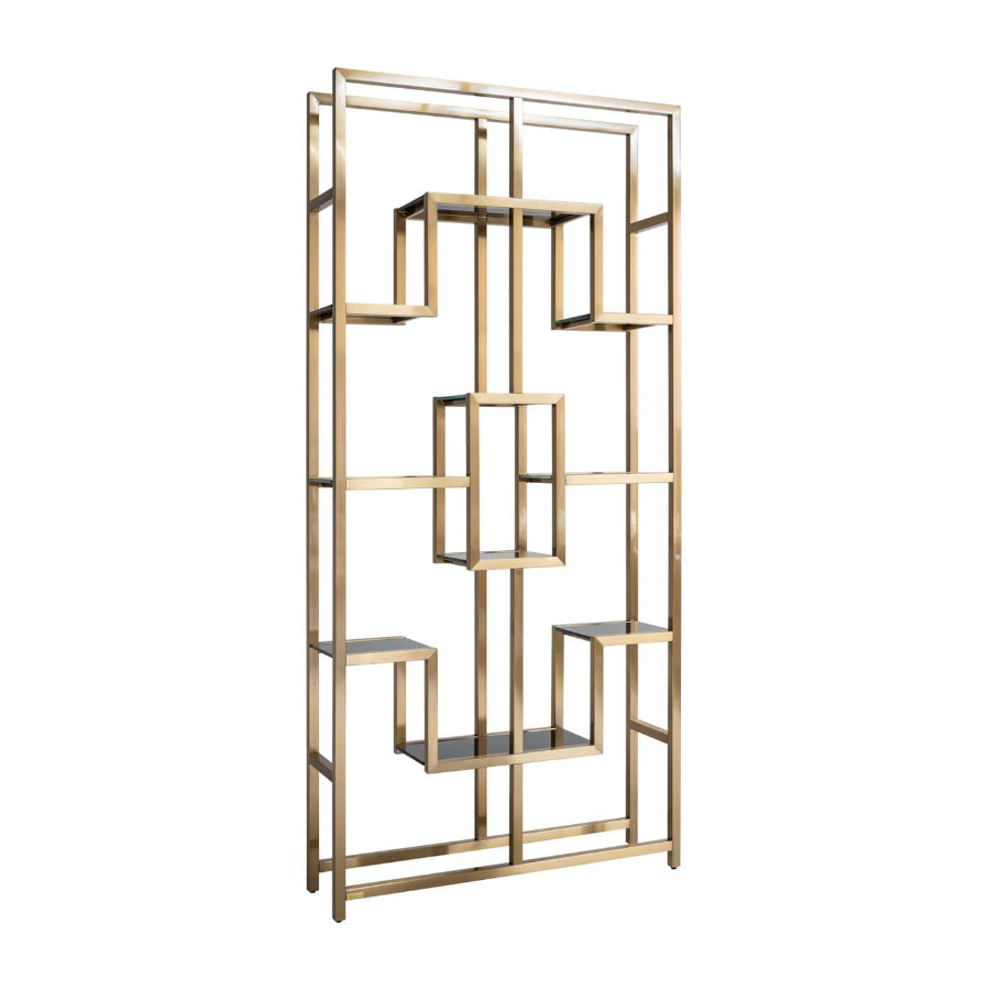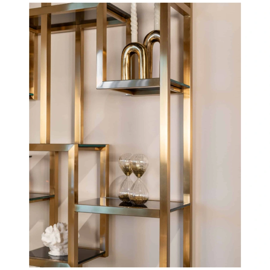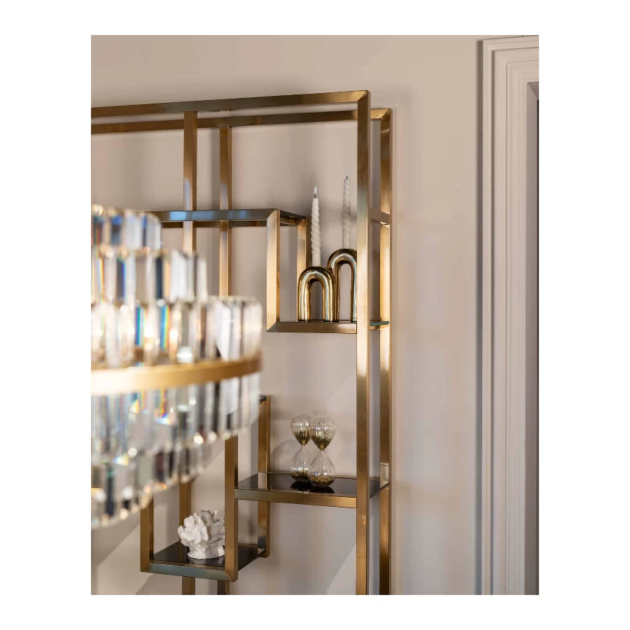 The Magnus wall cabinet is a striking and modern piece of furniture, crafted from gold-colored stainless steel (stainless steel).