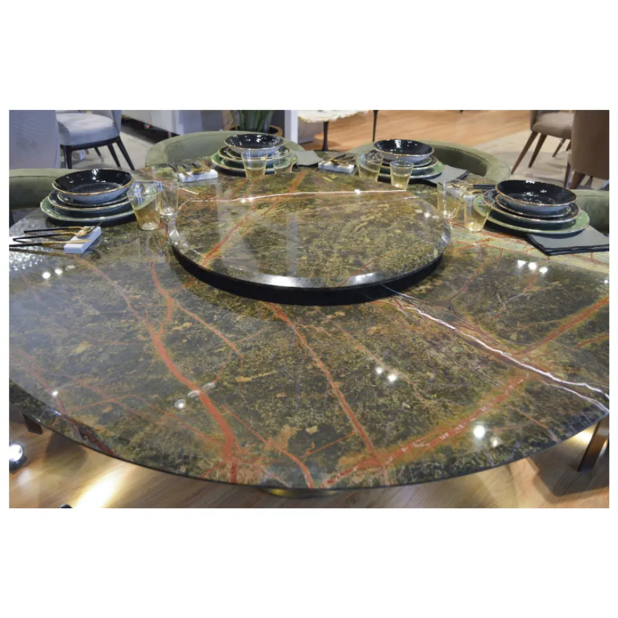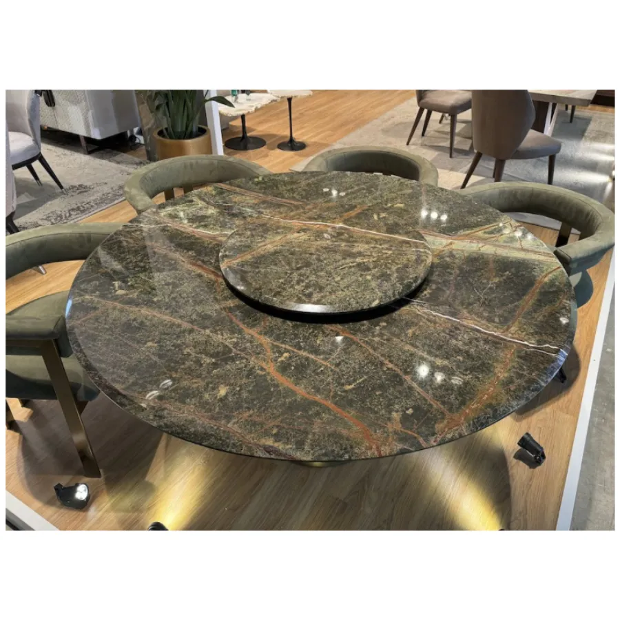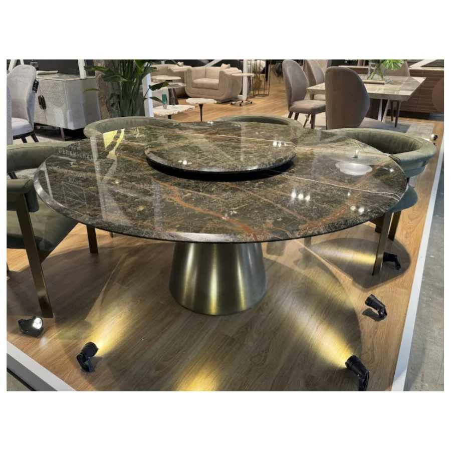 Integrated marble Lazy Susan enhances both practicality and luxury presentation.