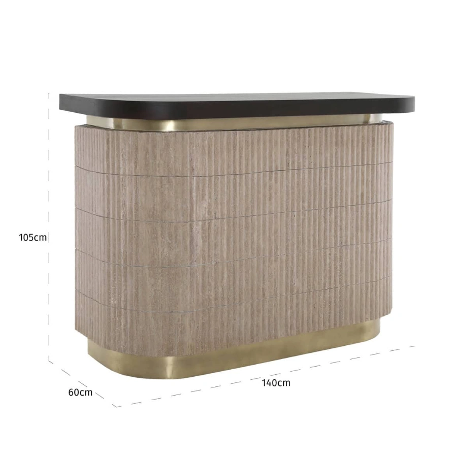 Material: Travertine, Mango, Mdf, Brass Cladding, Metal