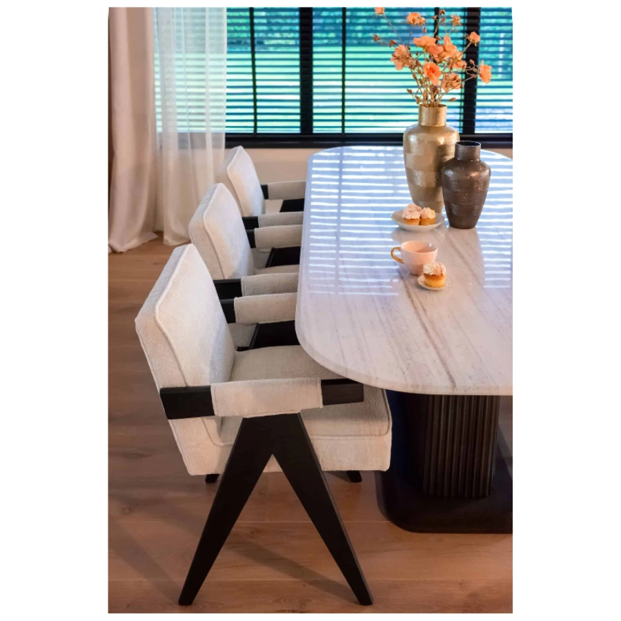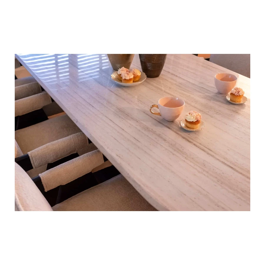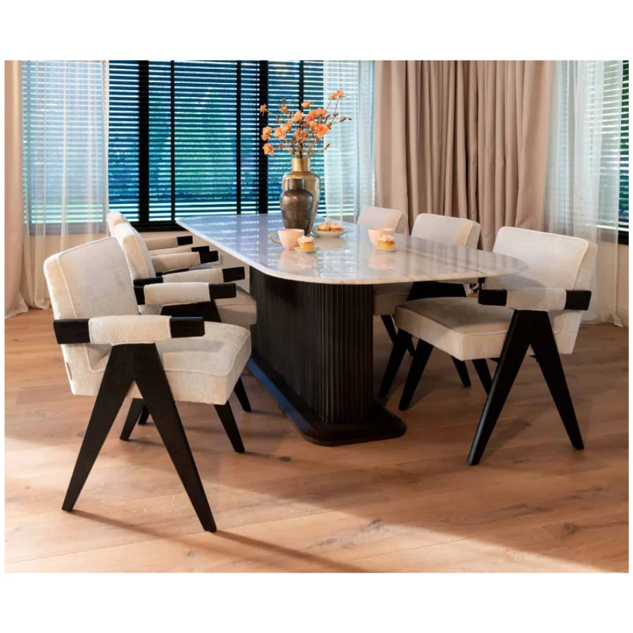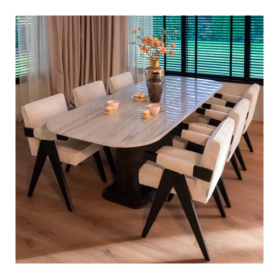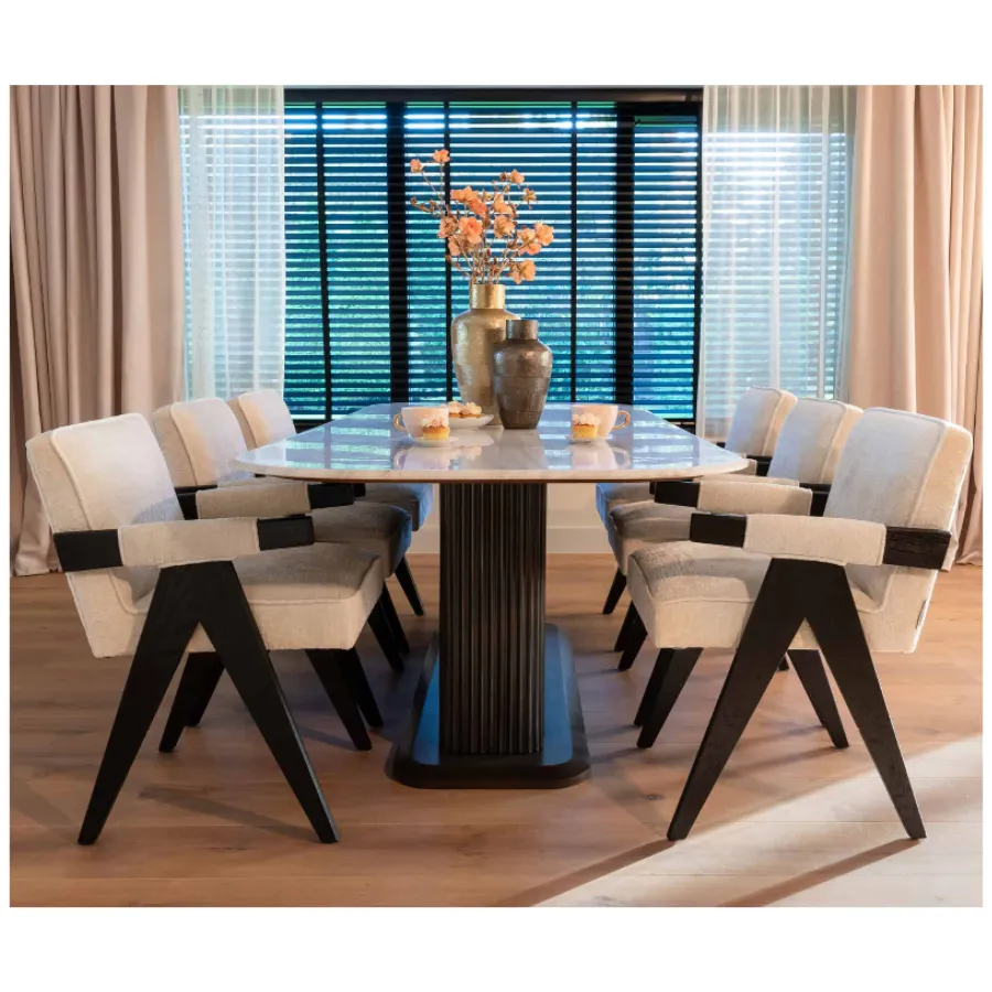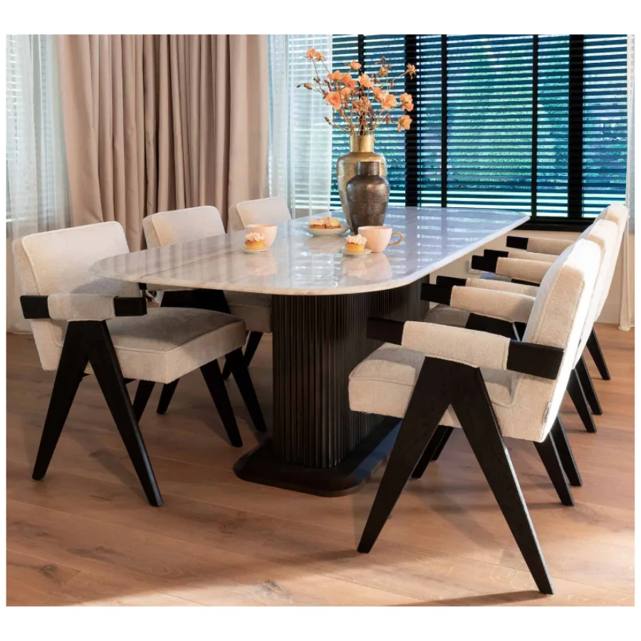 The tabletop, made from high-quality marble, is not only durable but also timelessly chic, making it a striking eye-catcher in any dining room.