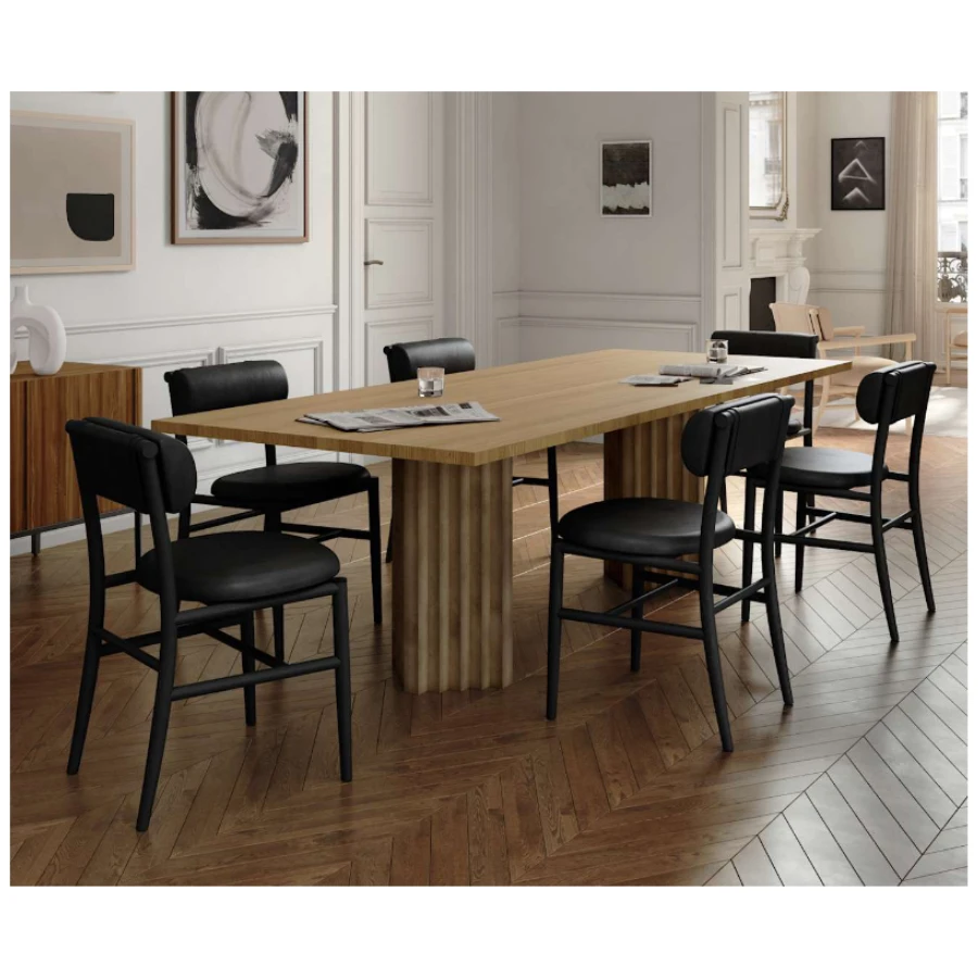 Inspired by traditional Japanese wooden slatted chairs, the Nama dining chair embodies a fusion of raw purity and refined craftsmanship.