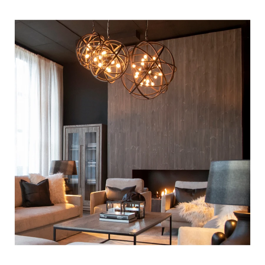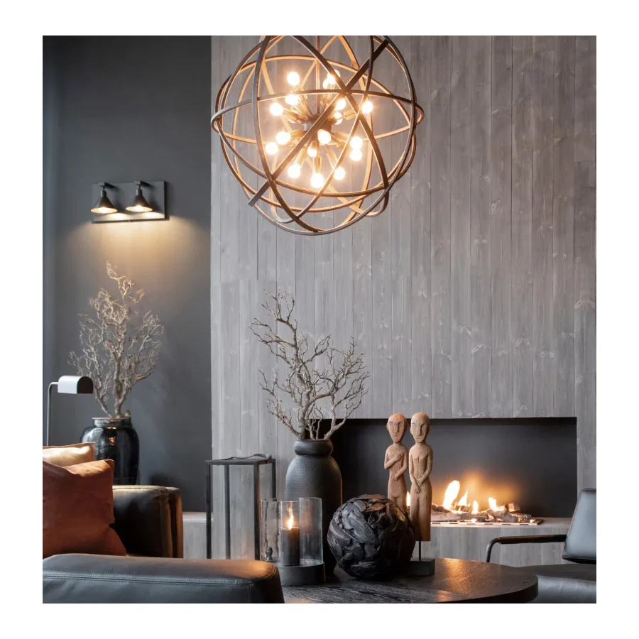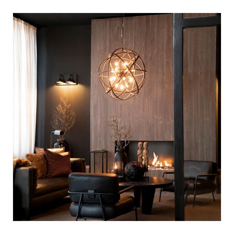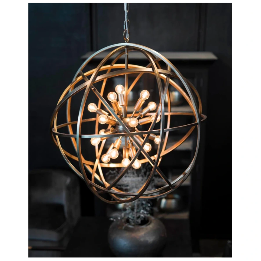 Ceiling lamp in metal with brass rings, perfect for creating a sophisticated and modern atmosphere in your home. making it easy to adjust to your needs. With space for nineteen light bulbs, it provides ample light and stylish illumination. It combines functionality with elegant design and is available in two sizes.