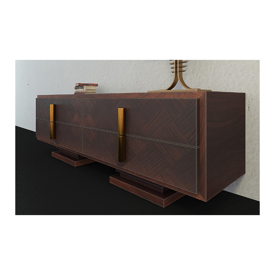 Wenge dresser with 4 drawers and burnished brushed steel details.