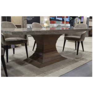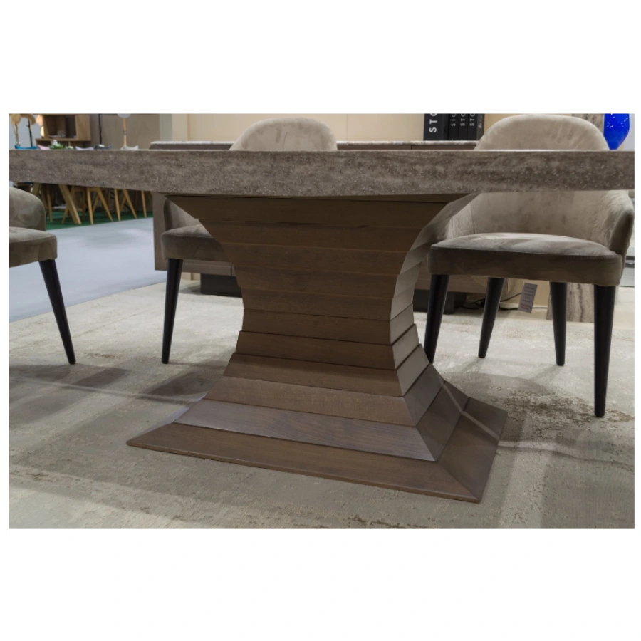 Introducing the Stone International Opera Dining Range, a collection that seamlessly blends classic elegance with modern sophistication. Crafted with the highest quality of solid wood, the Opera Collection adds a touch of grandeur to create a spectacular and sophisticated dining room ambience. The top of each piece in the Opera Range boasts a thick boat edge’ natural stone finish, adding a touch of luxury and uniqueness to the collection. The hand crafted solid wood base is meticulously crafted layer by layer using the best handmade techniques and varnished in multiple finishes. With an emphasis on exceptional craftsmanship, the Stone International Opera Dining Range reflects the epitome of skilled artistry.