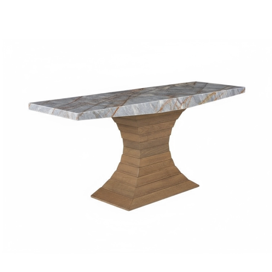 Base: Handcrafted in solid wood, the pedestal base is layered and varnished using skilled artisan techniques.