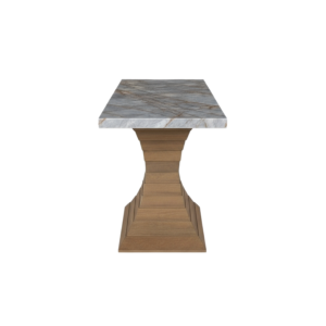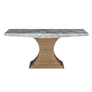 Top: The table features a natural Spyder marble, hand-selected for its unique veining and opulent look. The “boat edge” treatment refers to the thick, curved perimeter of the top, enhancing elegance and durability.