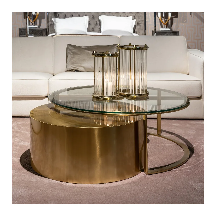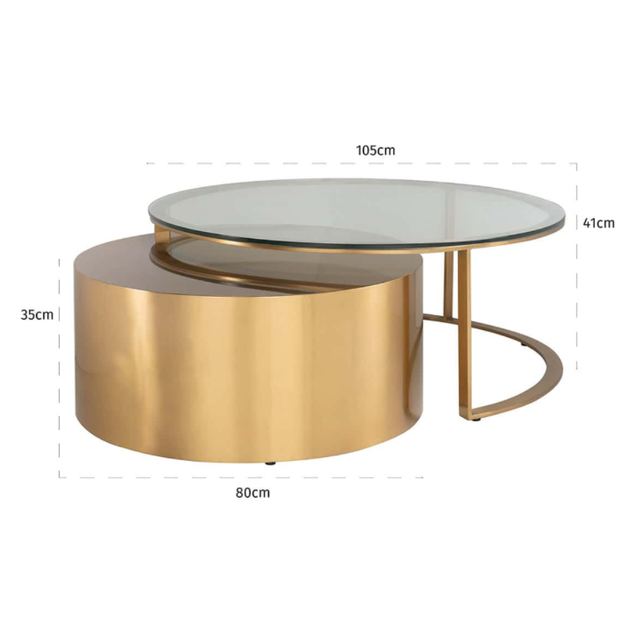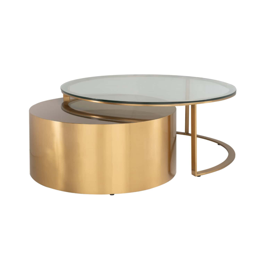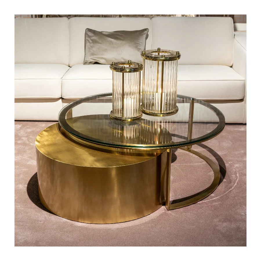 Orlan coffee table Orlan of 2 is a luxurious coffee table in brushed gold a glass top.