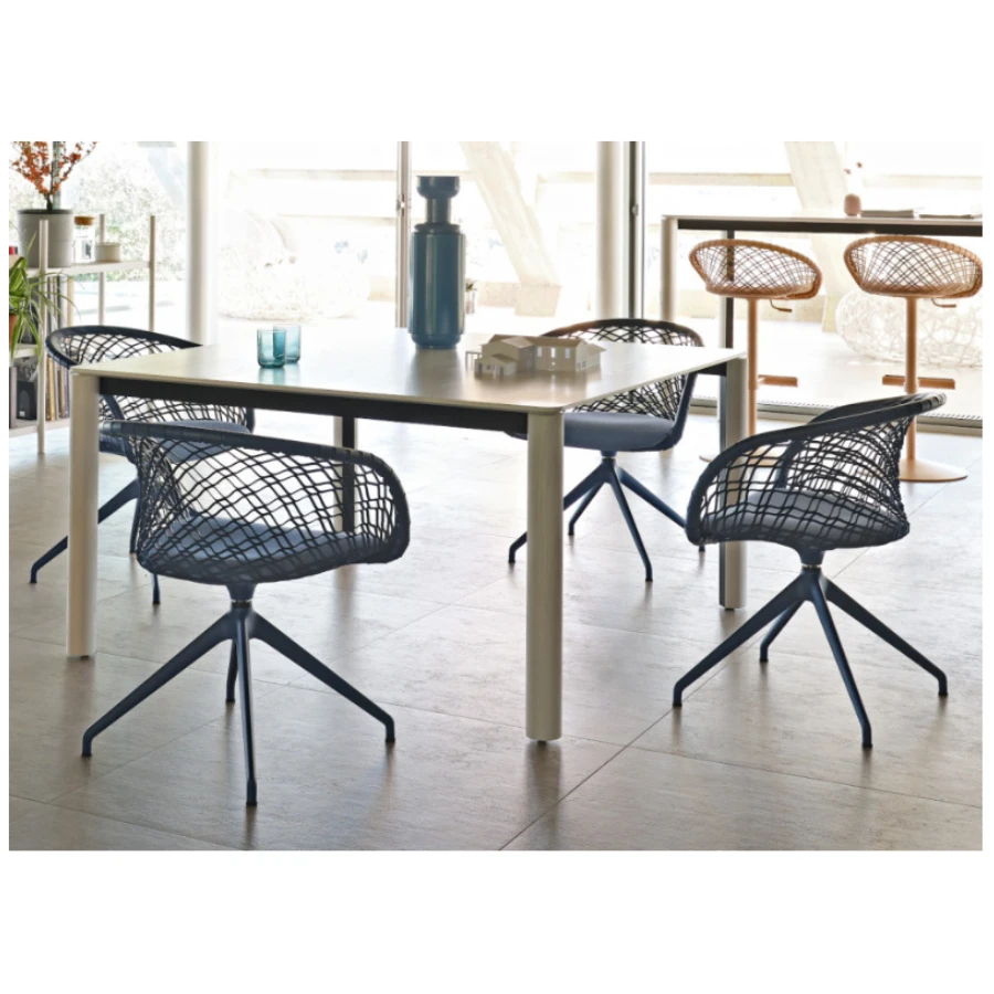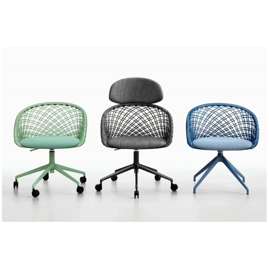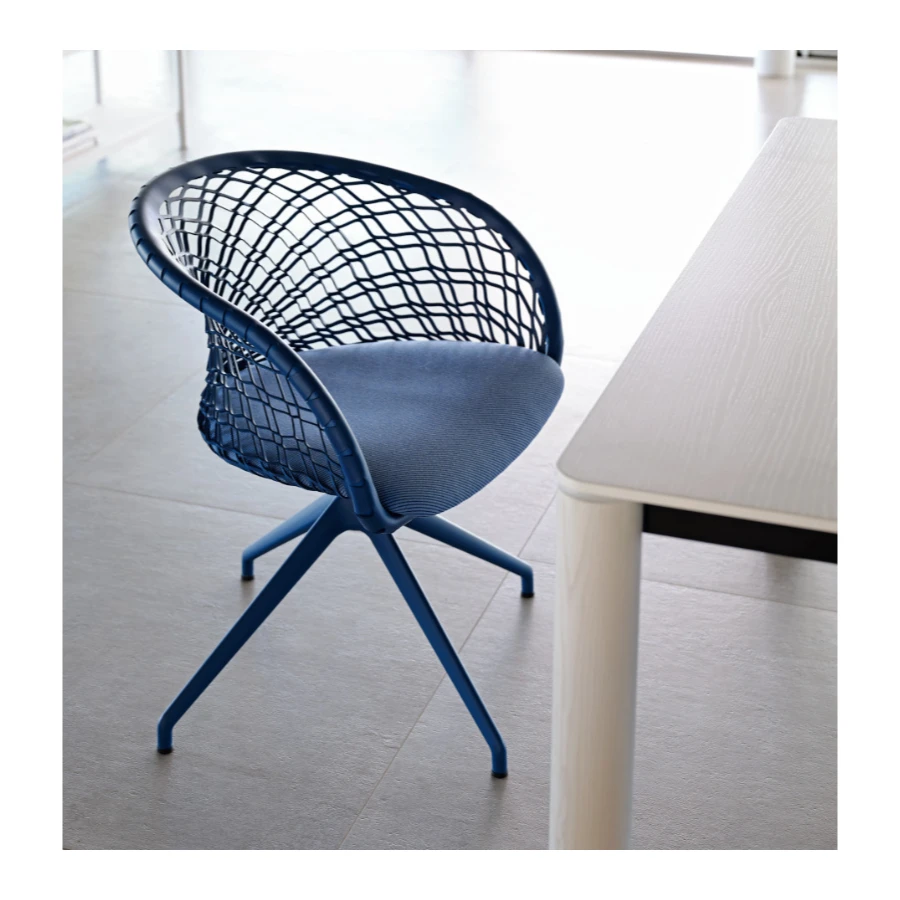 Characterized by its sculptural mesh backrest—crafted from tensioned leather or fabric stretched across a metal frame—it offers both breathability and standout style. The chair’s ergonomic, enveloping form ensures exceptional comfort, while the four-spoke swivel base adds a functional twist, perfect for dynamic living or workspaces. With its lightweight yet durable construction and refined Italian craftsmanship, the P47 P GX TS-CU is a statement piece that merges contemporary aesthetics with everyday practicality.