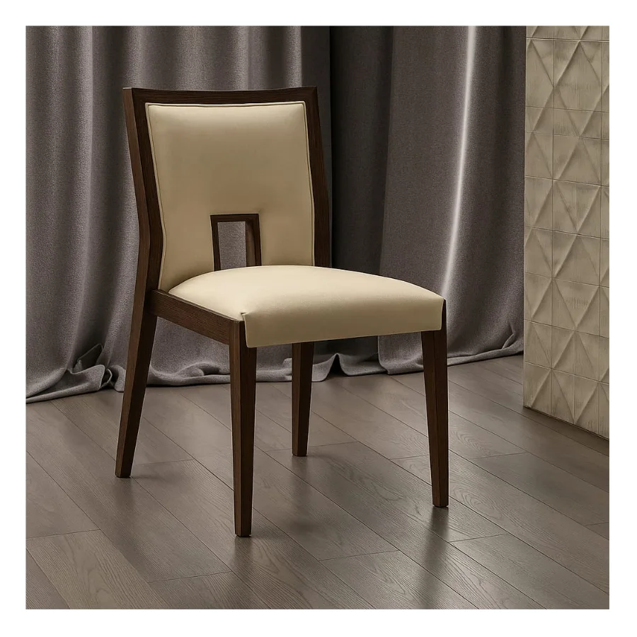 Cool dining chair has contemporary low back with striking cut-out detail.