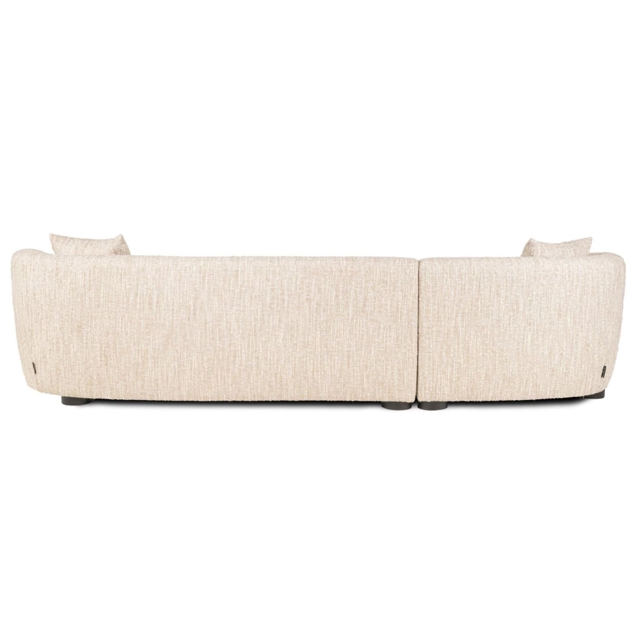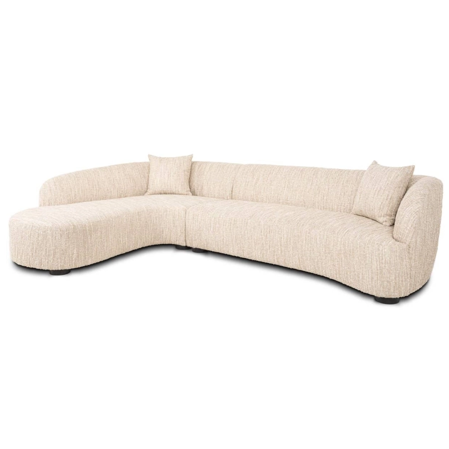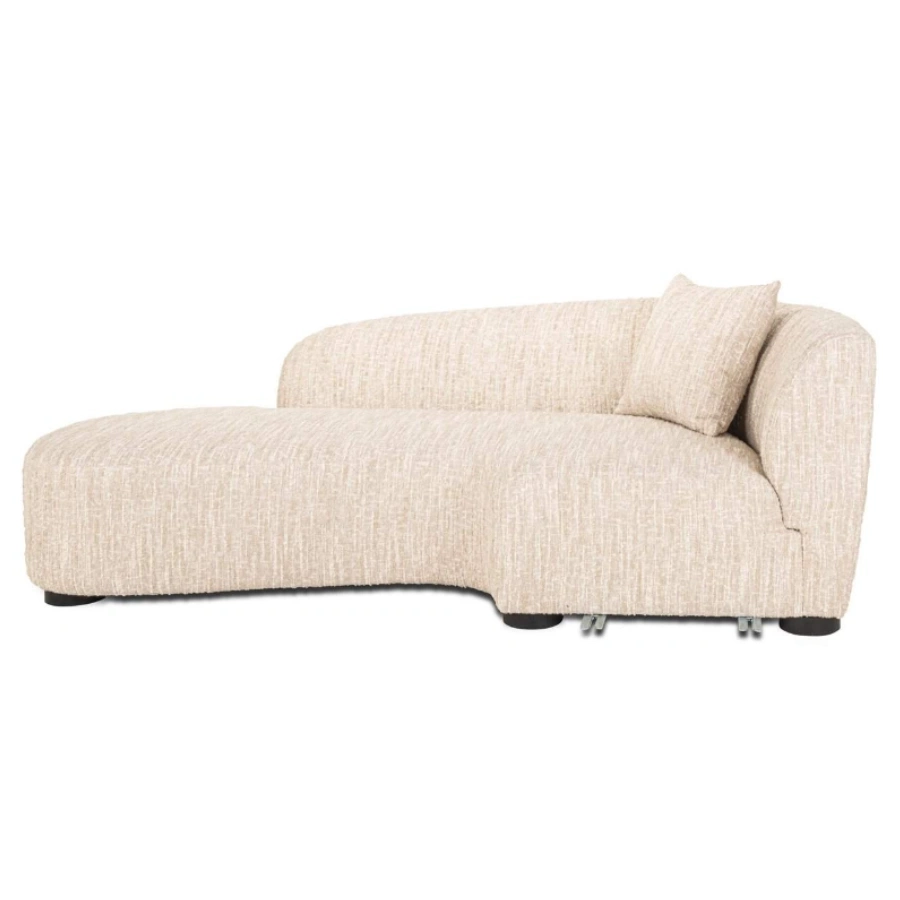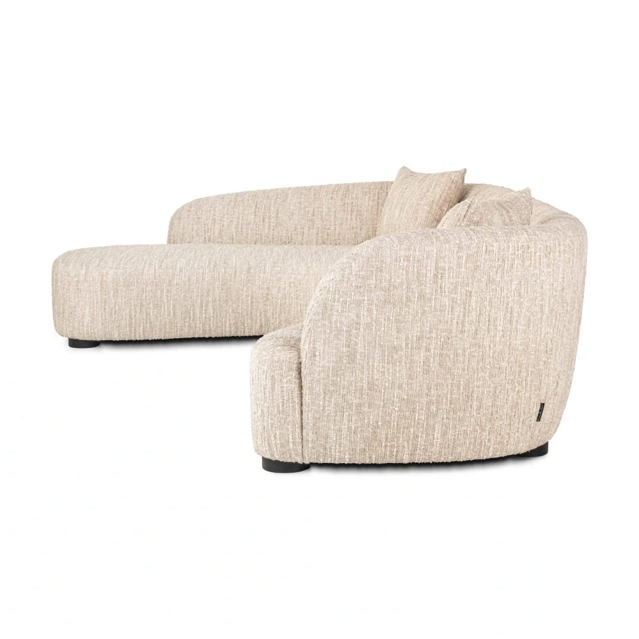 The Pandora lounge right sofa has sculptural curves and fixed cushions in beige angora. A striking lounge section that combines comfort and character.