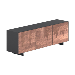 The Rain Wood sideboard by Studio Ozeta & Luca Roccadadria for Ozzio has beautiful canaletto walnut wood doors with wooden slats cascading down them, just like rain, hence the name.