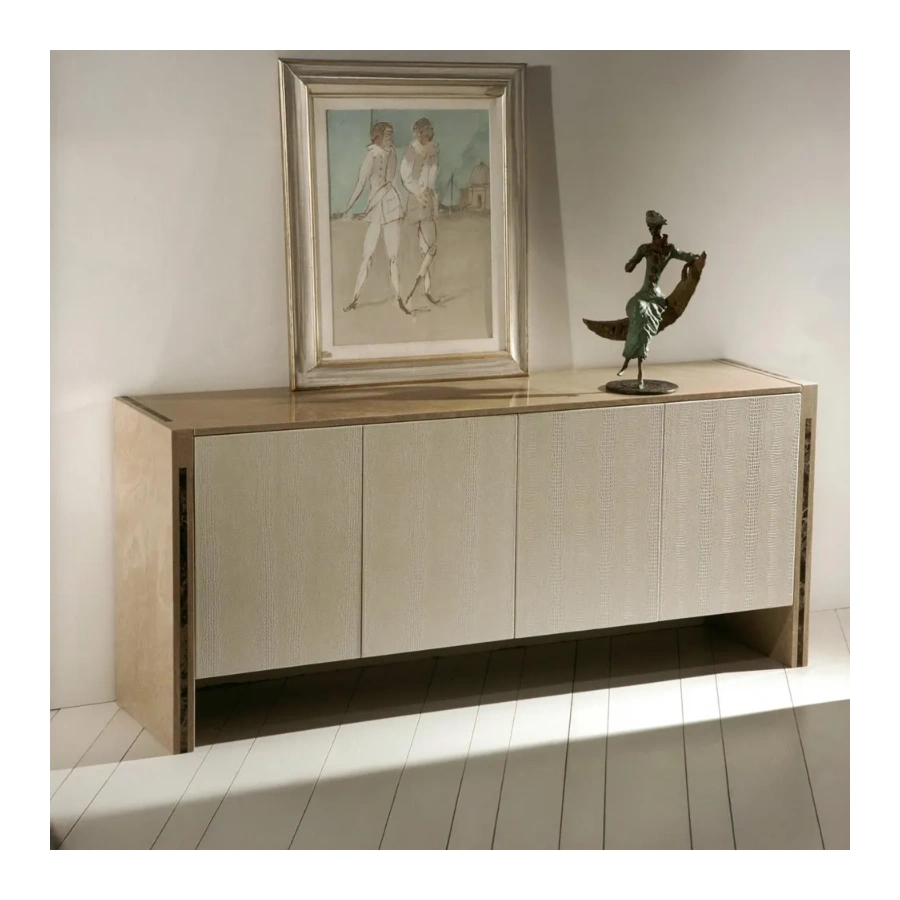Doors: Upholstered in cream lizard-effect eco-leather for a soft, refined finish