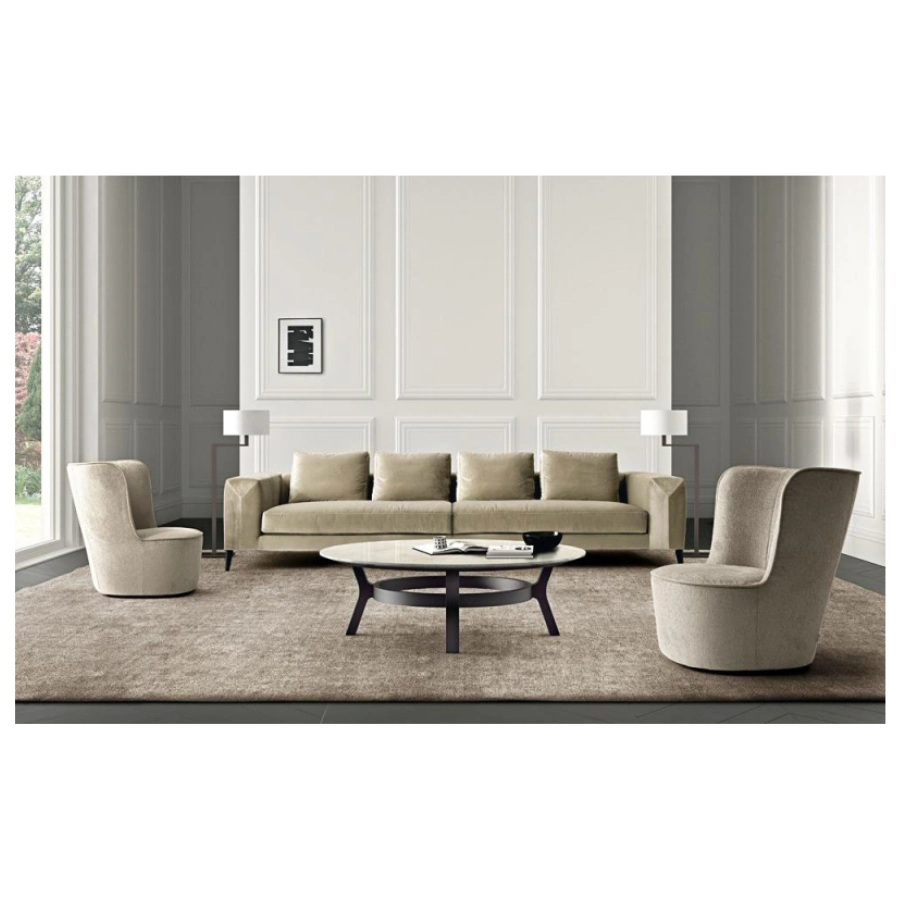 Perfect for smaller living spaces, reading nooks, bedrooms, or as accent seating in larger rooms where the full-size Royale might be overwhelming. Ideal for boutique hotels, executive offices, or sophisticated residential interiors seeking Italian design elegance in a compact form.