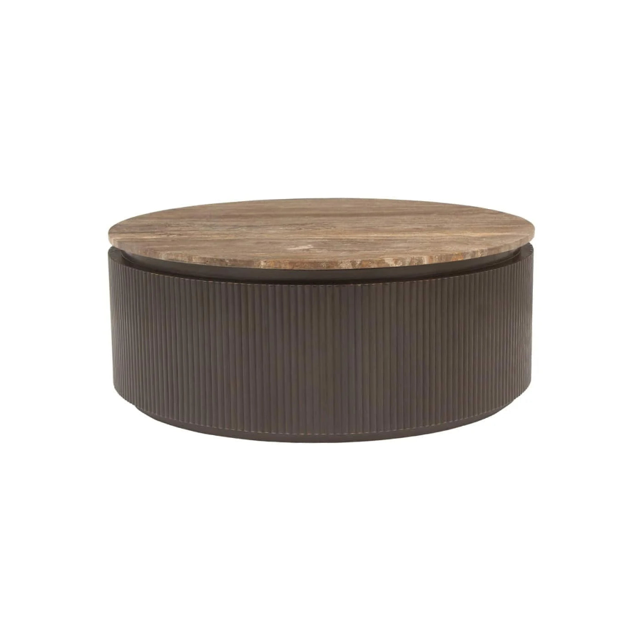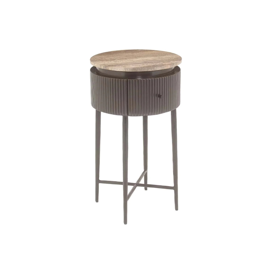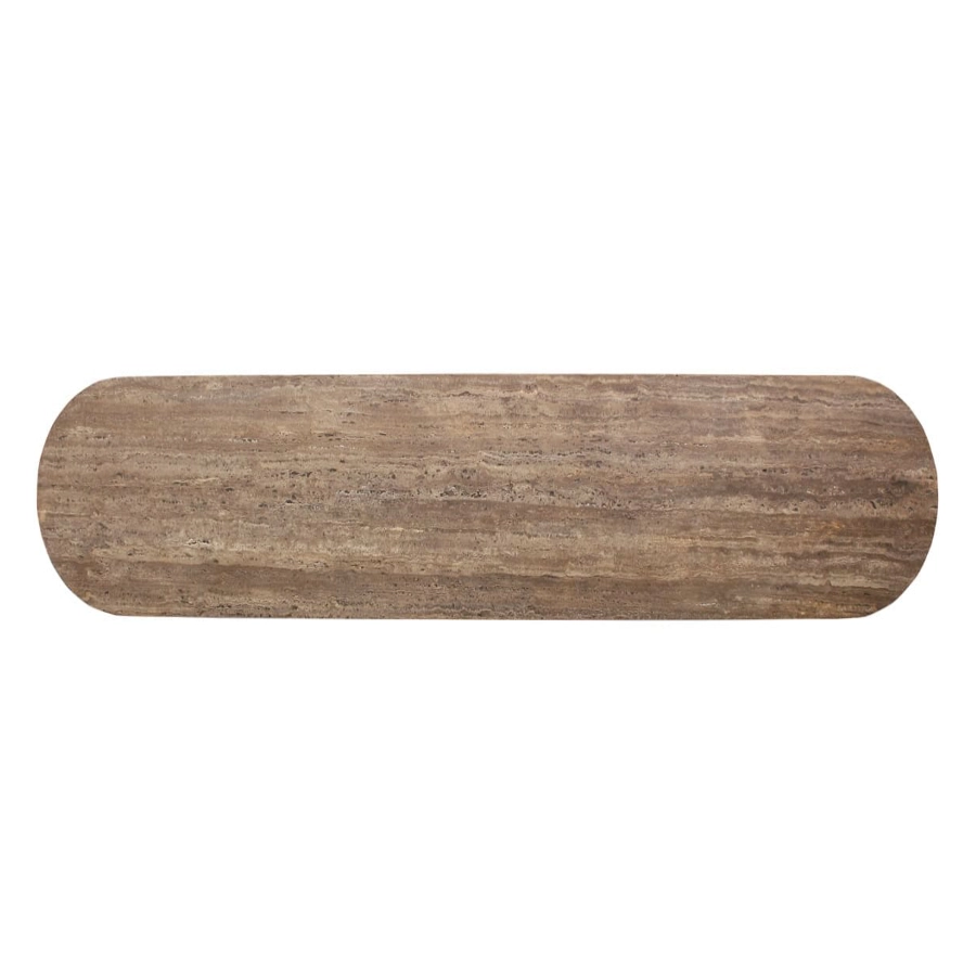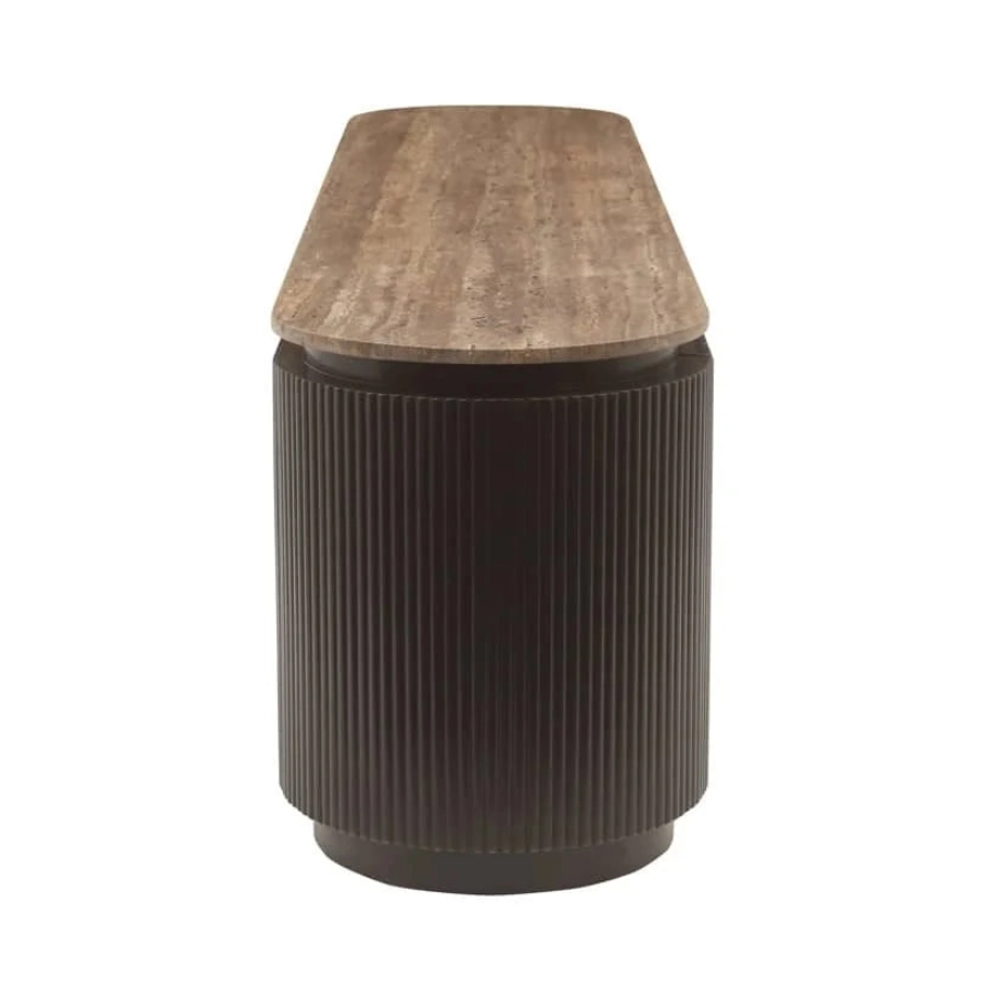 Maintenance: Travertine surface should be protected from acidic spills; base easily wiped clean for everyday elegance.