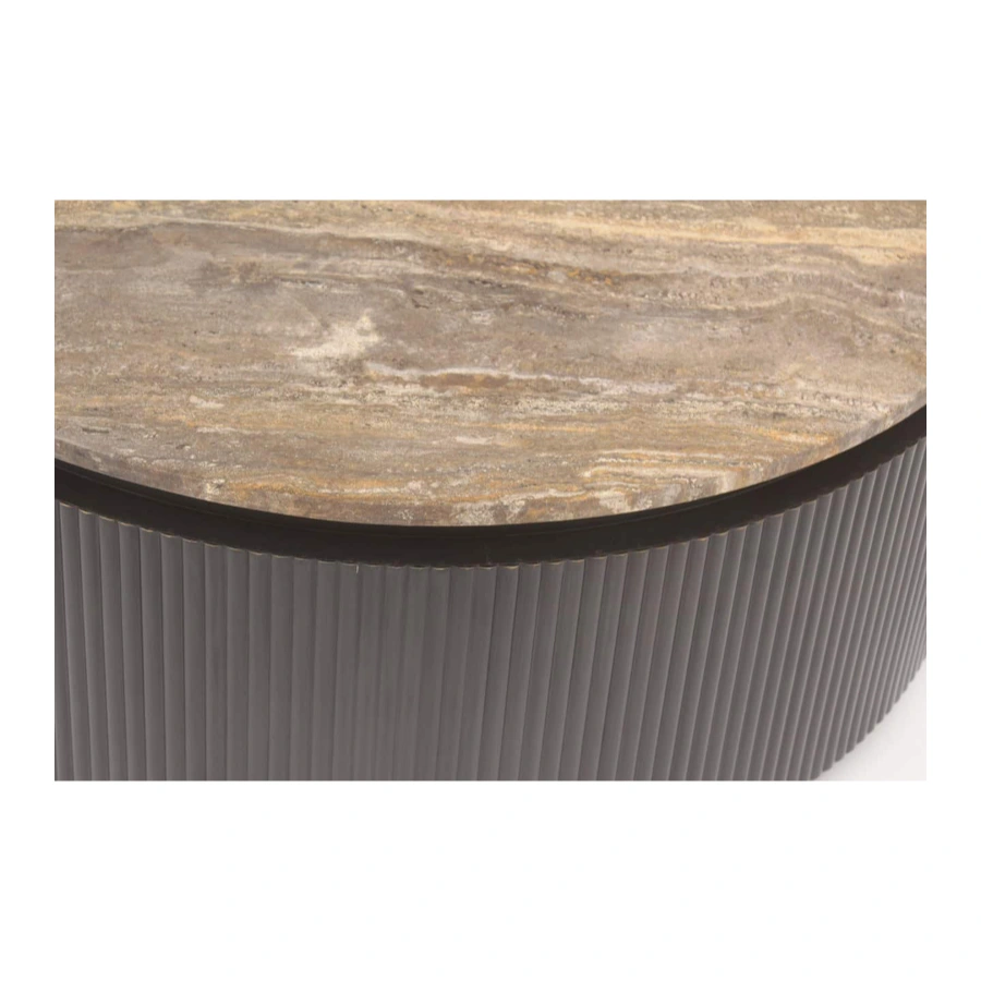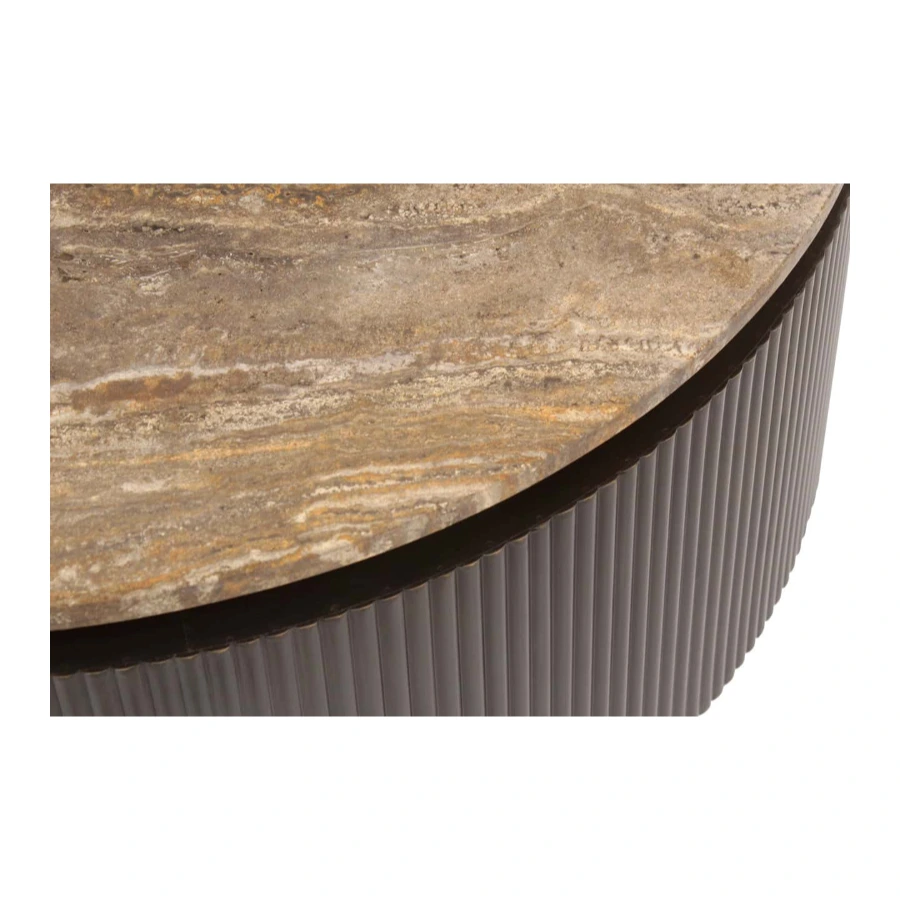 Maintenance: Travertine surface should be protected from acidic spills; base easily wiped clean for everyday elegance.