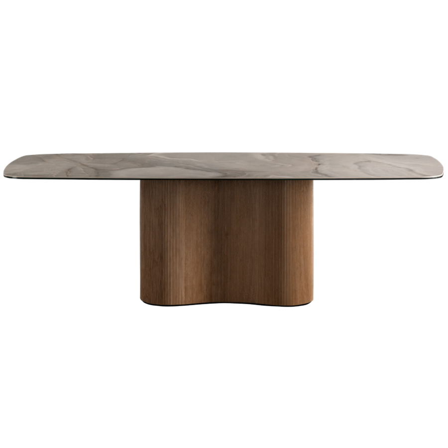 Design: Modern, continuous curved form with an open-base structure for airy, light visual impact