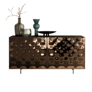 Sideboard with lacquered container, Bronze mirror door cladding, aluminium frame.