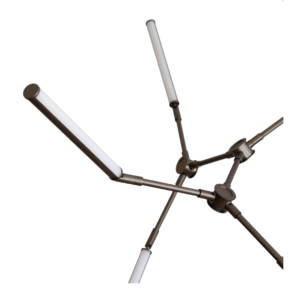 Shifting away from the starkness typically associated with neon, these innovative lamps exude a warmer, more inviting glow, setting the ambiance for a cozy and comforting atmosphere. The chandelier features eight adjustable arms, allowing each light element to be repositioned and angled as desired. This flexibility gives users the freedom to create dynamic, personalized compositions – whether uniform and symmetrical or expressive and asymmetrical.