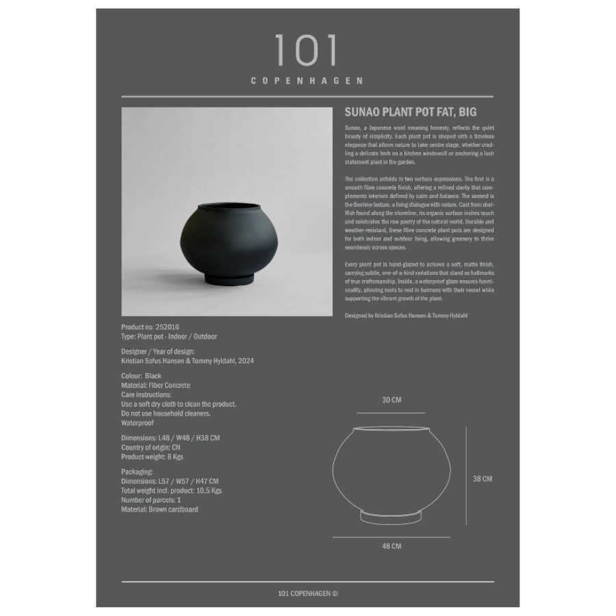 Fiber Concrete:Â Inspired by the Brutalism Architecture movement of the mid-20th century, fiber concrete has become the signature material of the 101 Copenhagen furniture collection. Emphasizing sculptural shapes, the texture of concrete creates a fine balance between sharp architectural lines and soft organic curves. Cast in lightweight fiber concrete, each product gets a unique tactile surface with small incorrections and nuances. The surface is afterwards coated, to create a strong and resistance product. Finally, the product is hand painted two times by brush, to create a brushed layered colour.
