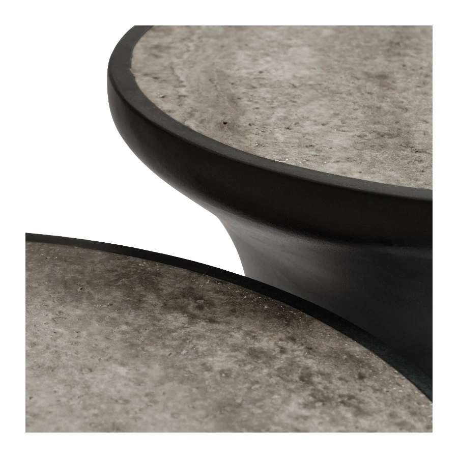 The result is a material composition that is both expressive and enduring; timeless stone anchored by crafted concrete, designed to enrich furniture with contrast, balance, and sculptural presence.