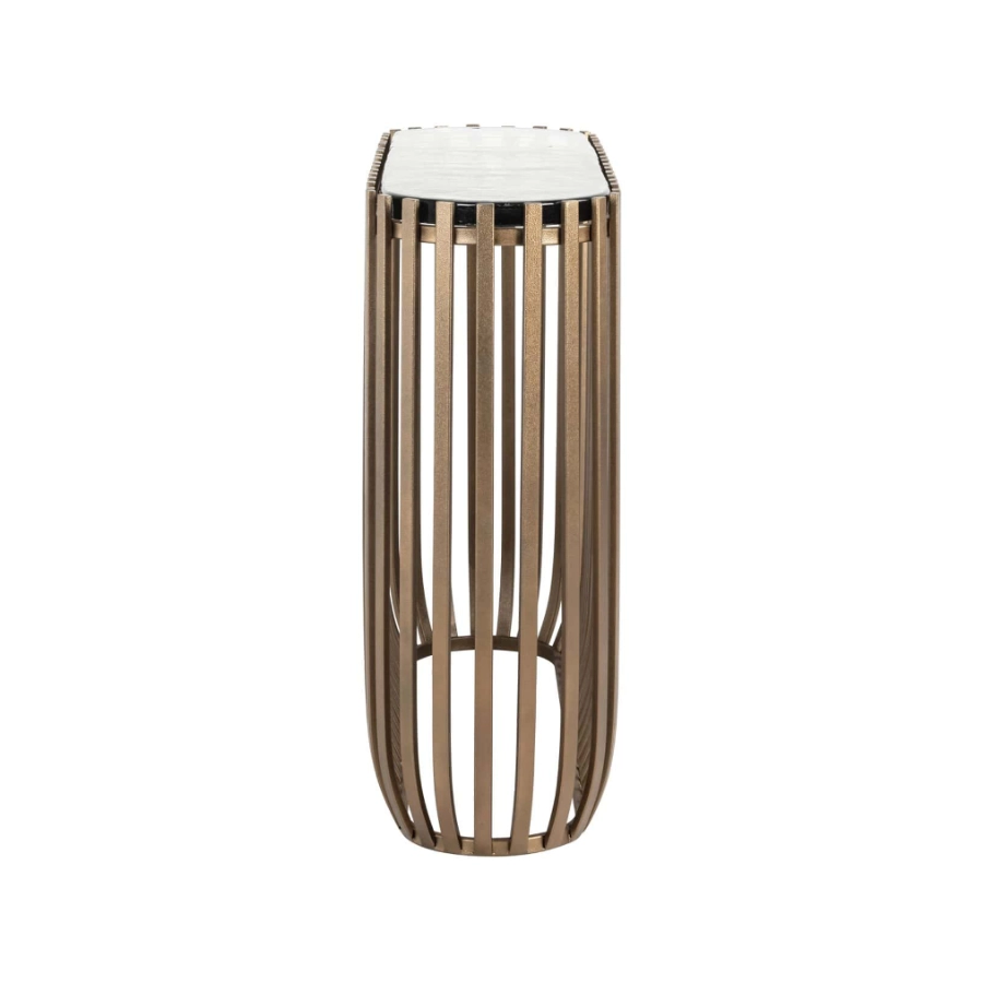 This table can be placed flush against the wall and is perfect for displaying decorative objects or for use as a functional table in smaller spaces.