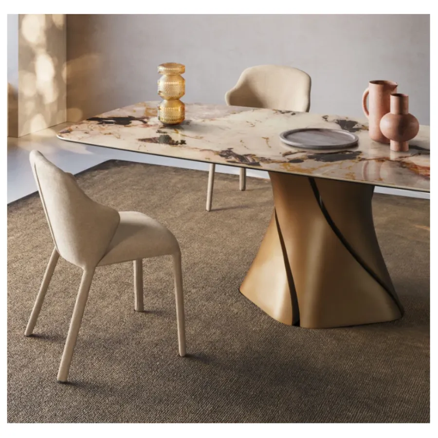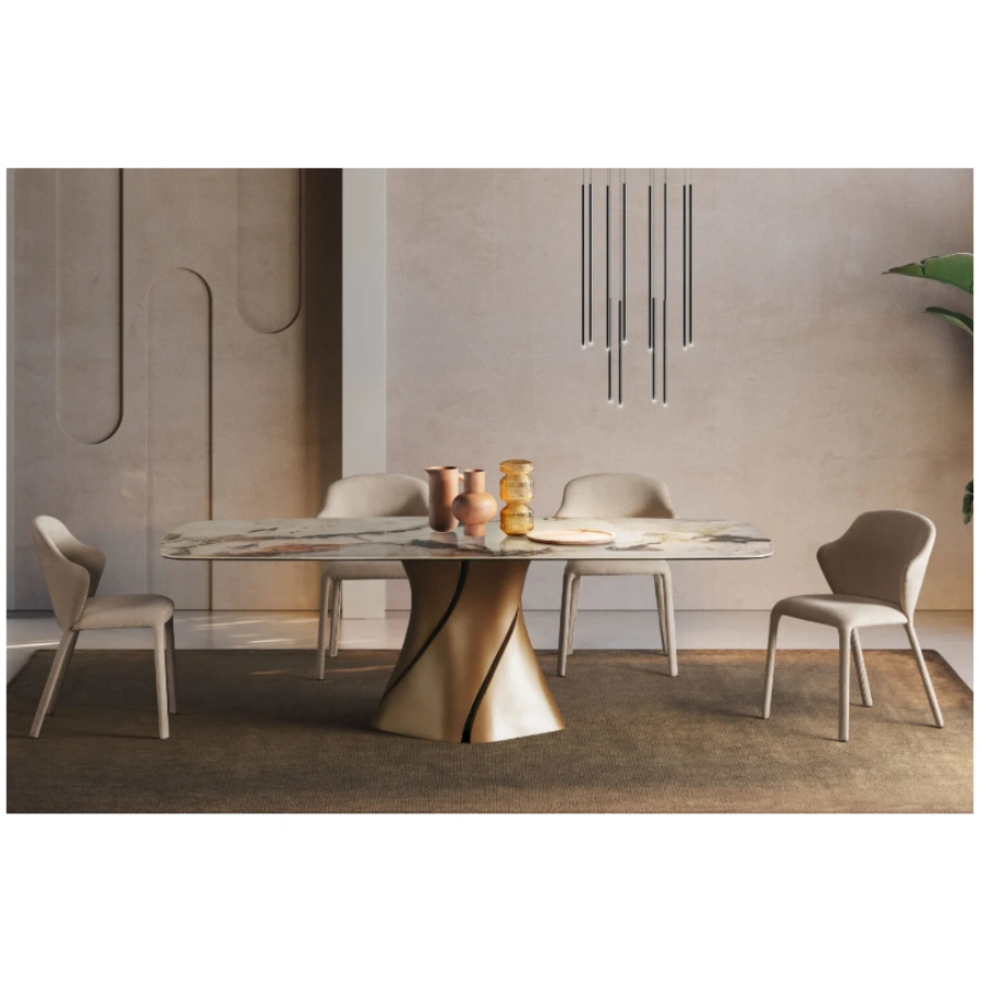 With its blend of technical precision, dramatic lines, and opulent materials, the Vortex Barrel Shaped Dining Table brings bold Italian sophistication and artistry to any interior.