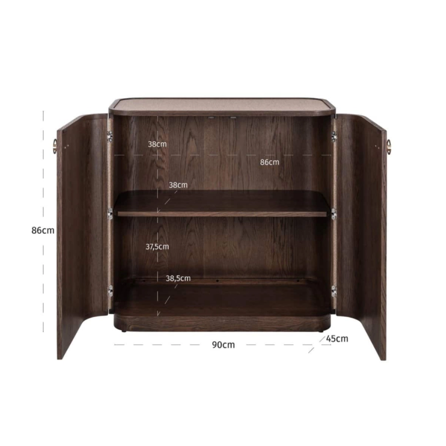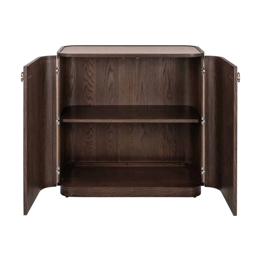 The Willox compact sideboard in brown features two doors and offers stylish storage in a space-saving design.