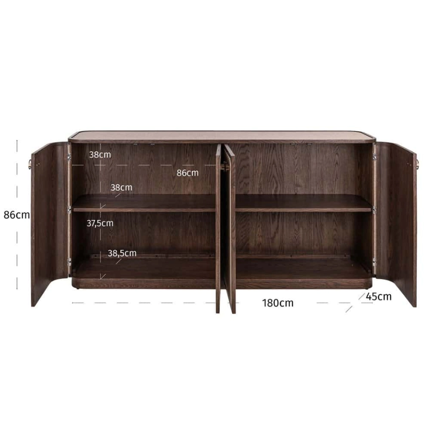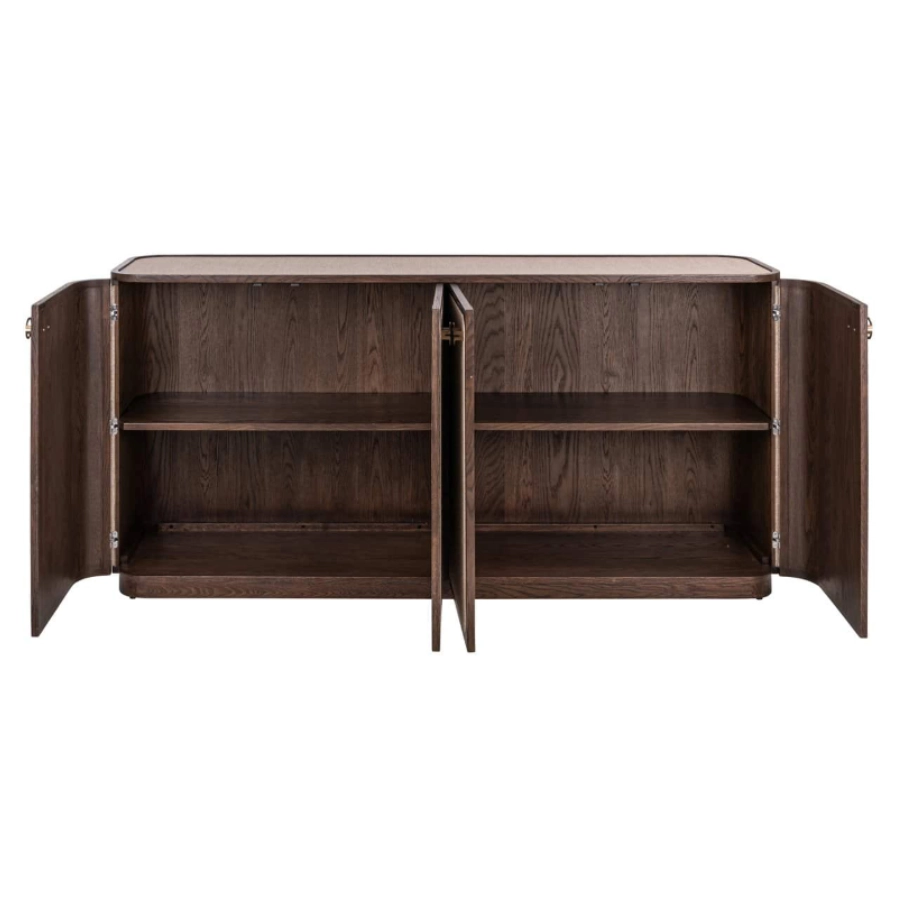 The Willox sideboard in brown, featuring four doors, is both robust and practical with a warm, inviting appearance.