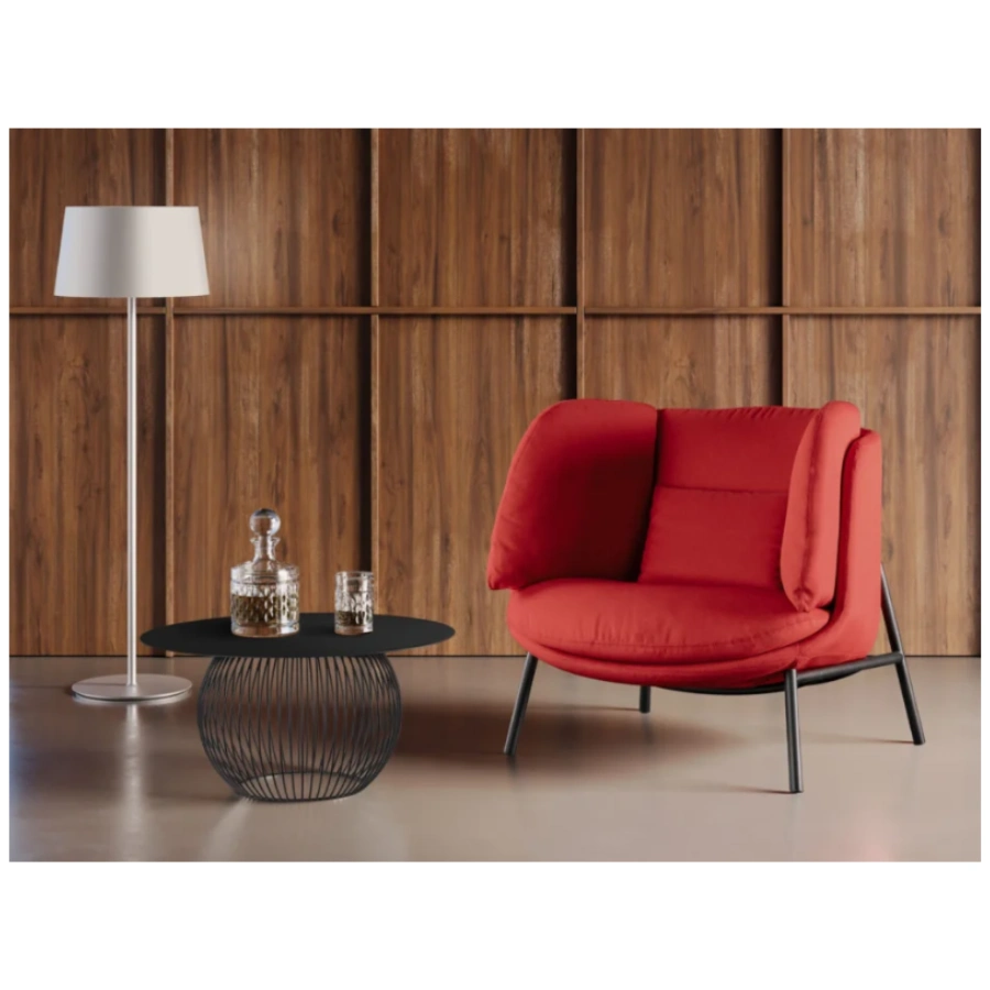 Design Harmony: Combines sculptural Italian design with bold color, ideal for interiors seeking a dramatic accent.